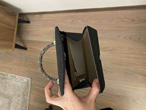 Kadın SİYAH Simli Abiye Çanta – Taş detaylı sap - Zincir uzun askı Kadın SİYAH Simli Abiye Çanta – Taş detaylı sap - Zincir uzun askı AS8105 تک سایز