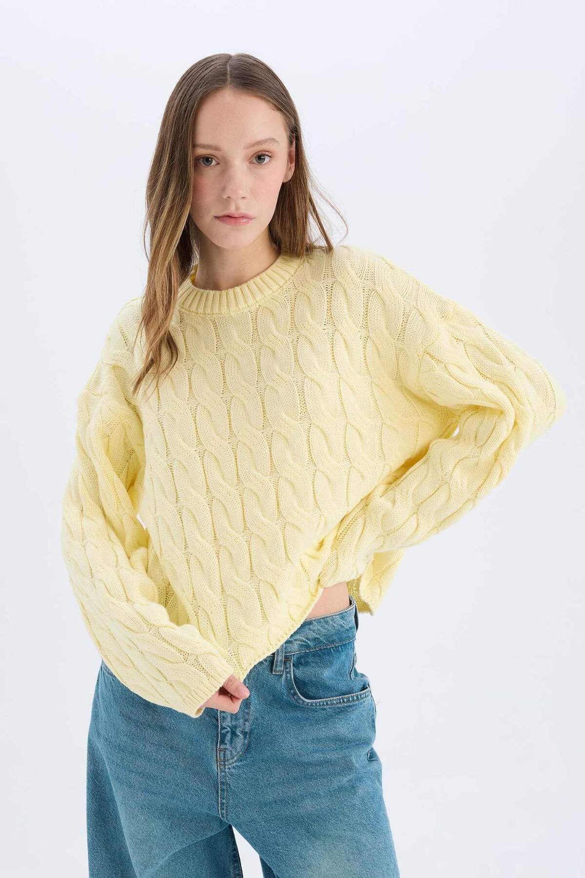 Coool Regular Fit Bisiklet Yaka Saç Örgülü Triko Kazak E4604AX25SP Coool Regular Fit Bisiklet Yaka Saç Örgülü Triko Kazak E4604AX25SP L