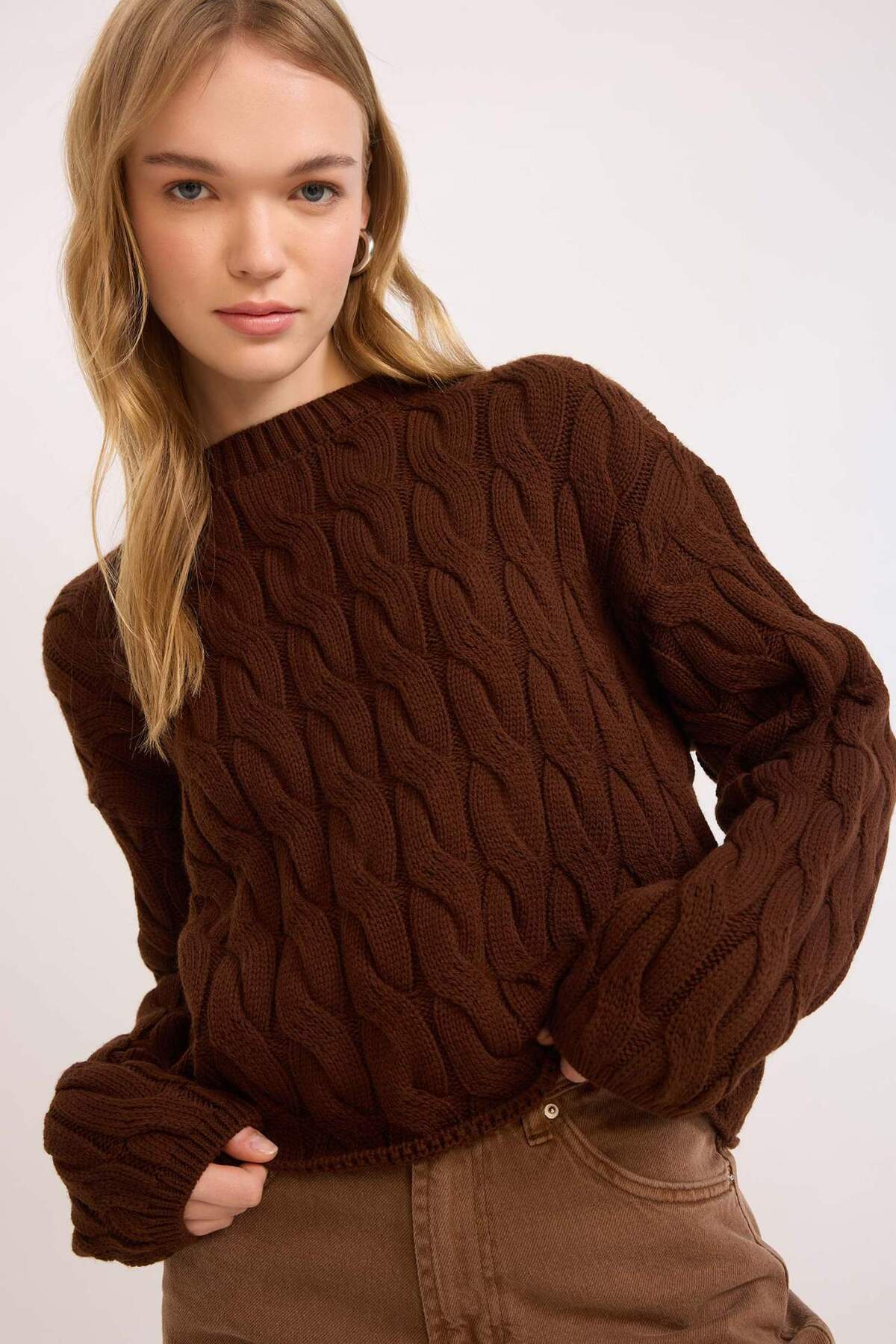 Coool Regular Fit Bisiklet Yaka Saç Örgülü Triko Kazak E4604AX25SP Coool Regular Fit Bisiklet Yaka Saç Örgülü Triko Kazak E4604AX25SP L