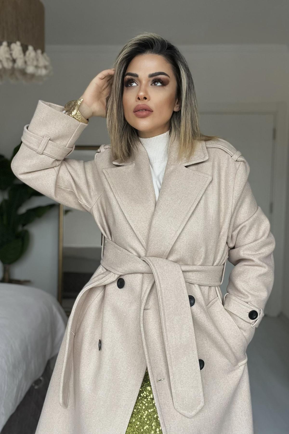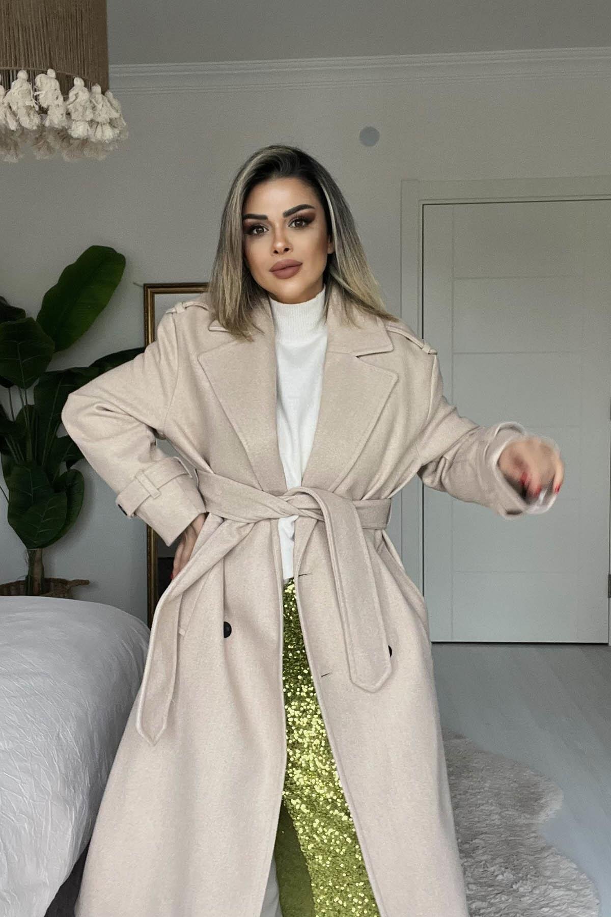 Apoletli Bğlamalı Kaşe Kaban TAŞ Apoletli Bğlamalı Kaşe Kaban TAŞ FP-KBN9377 L