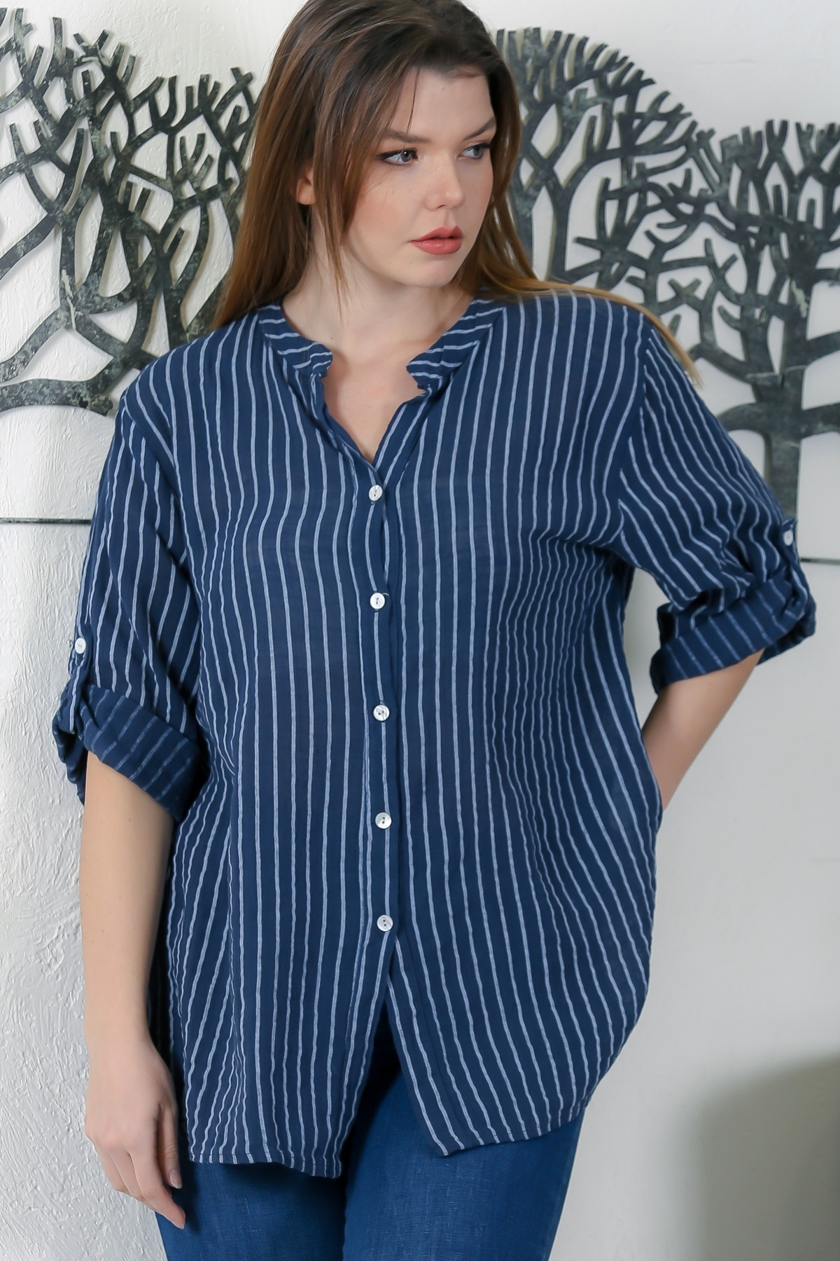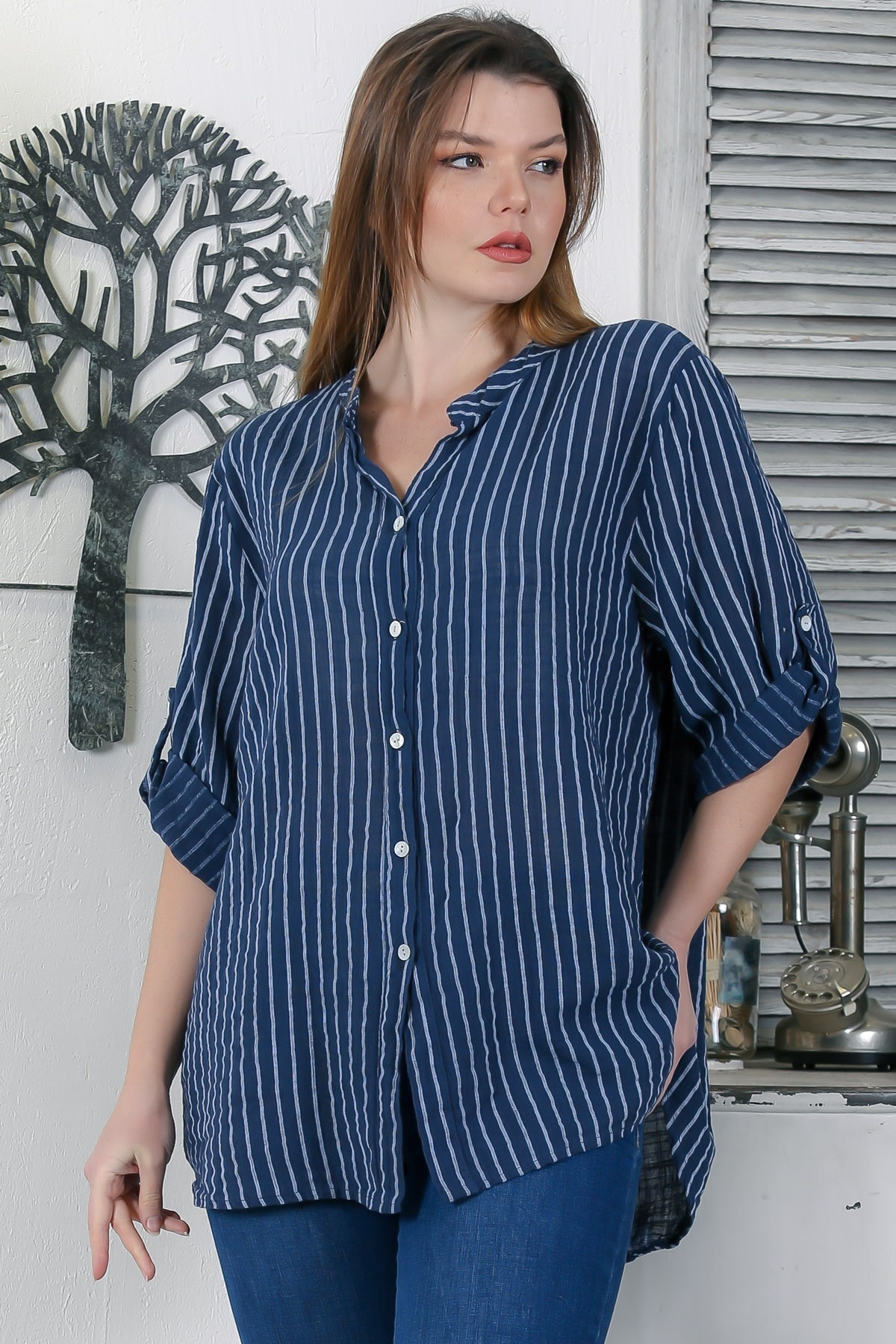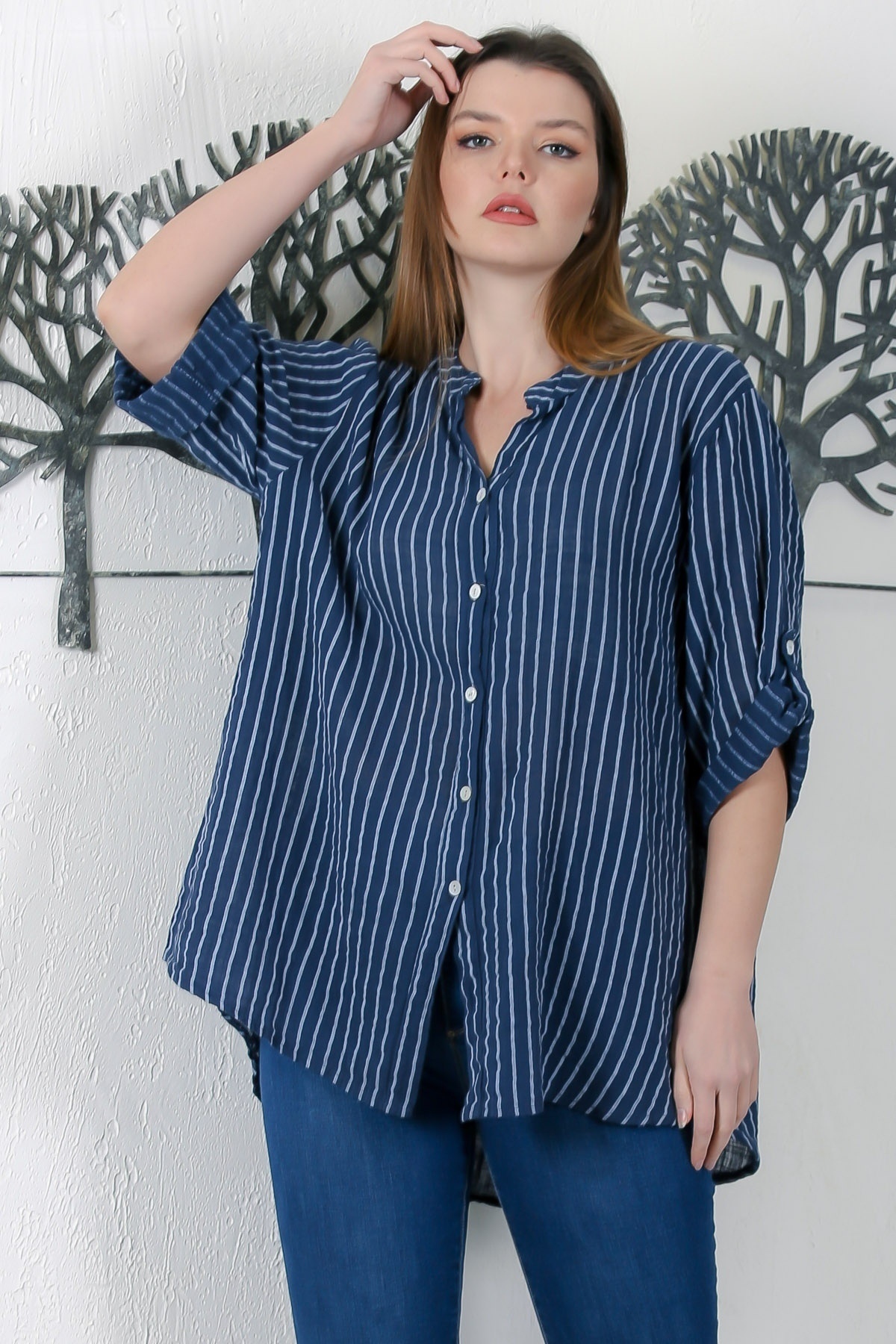 İtalyan Lacivert Düğmeli 3/4 Kol Çizgili Casual Arkası Uzun Dokuma Gömlek 75 65 İtalyan Lacivert Düğmeli 3/4 Kol Çizgili Casual Arkası Uzun Dokuma Gömlek 75 65 M10010400GM98930 2XL