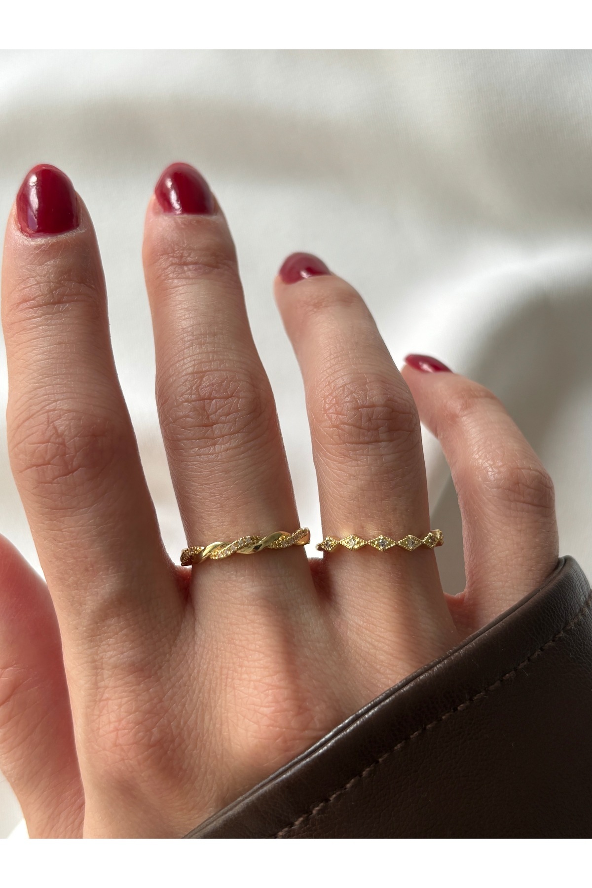 Gold Mini Taşlı İnce Çıtır 2'li Yüzük Gold Mini Taşlı İnce Çıtır 2'li Yüzük RB1028 تک سایز