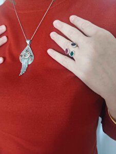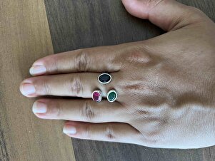 Renkli Taşlı El Sarması Üç Başlı Gümüş Yüzük 5945 Renkli Taşlı El Sarması Üç Başlı Gümüş Yüzük 5945 MR5821 تک سایز