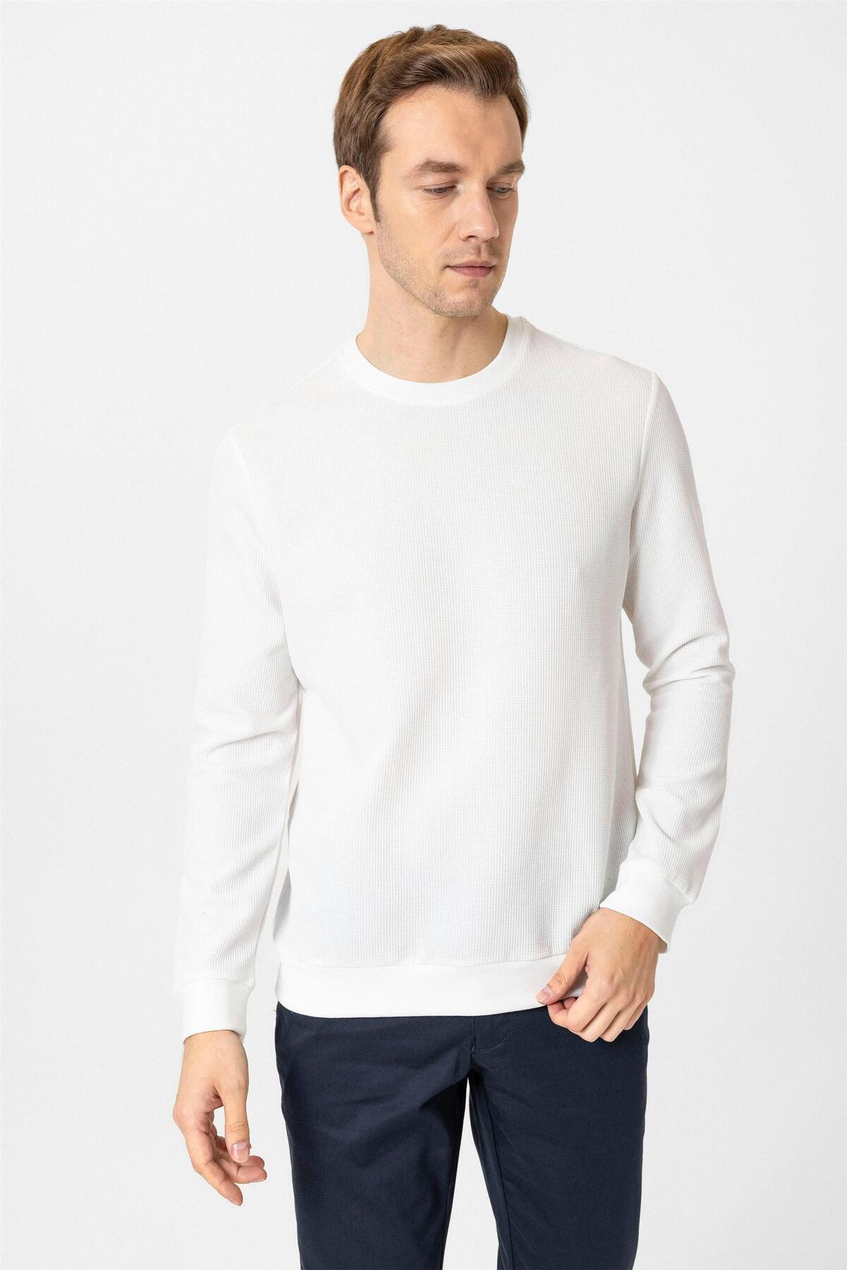 Beyaz Regular Armürlü Bisiklet Yaka Triko Beyaz Regular Armürlü Bisiklet Yaka Triko TR2013700460 2XL