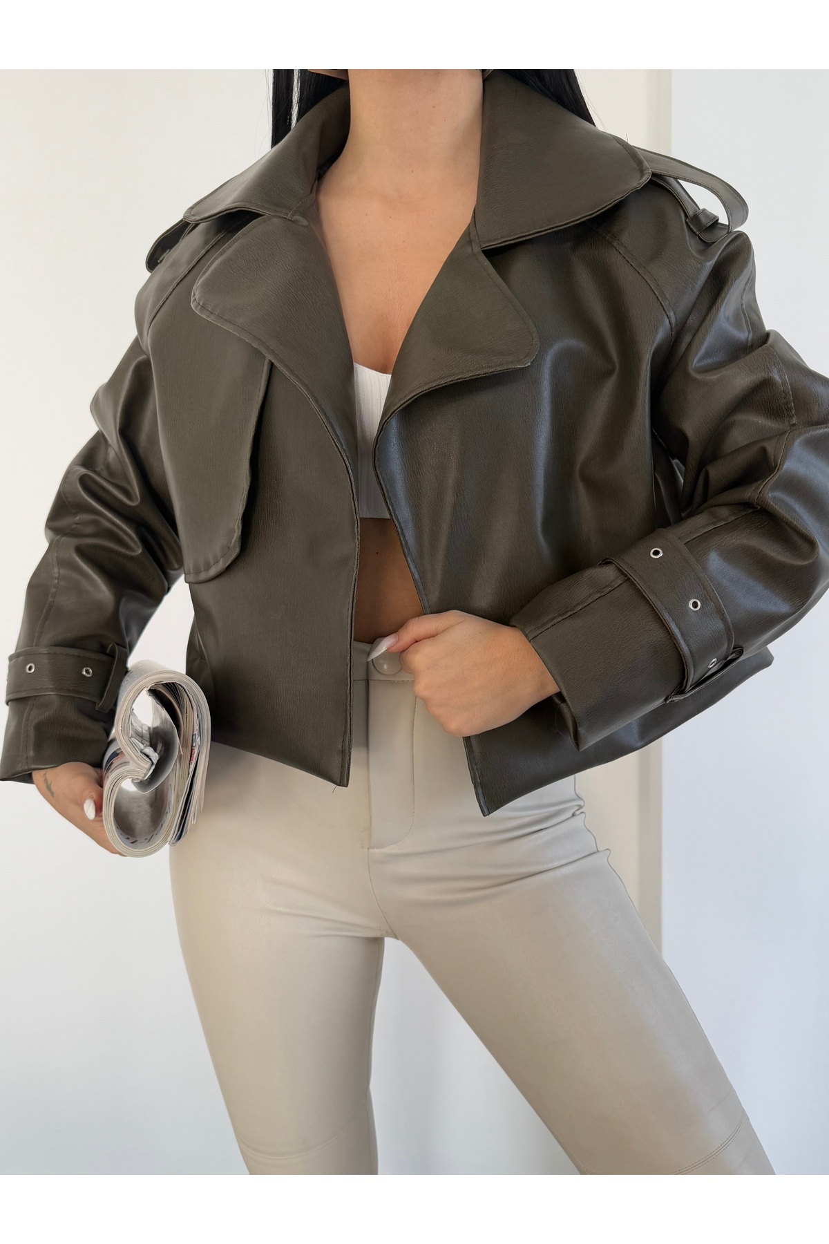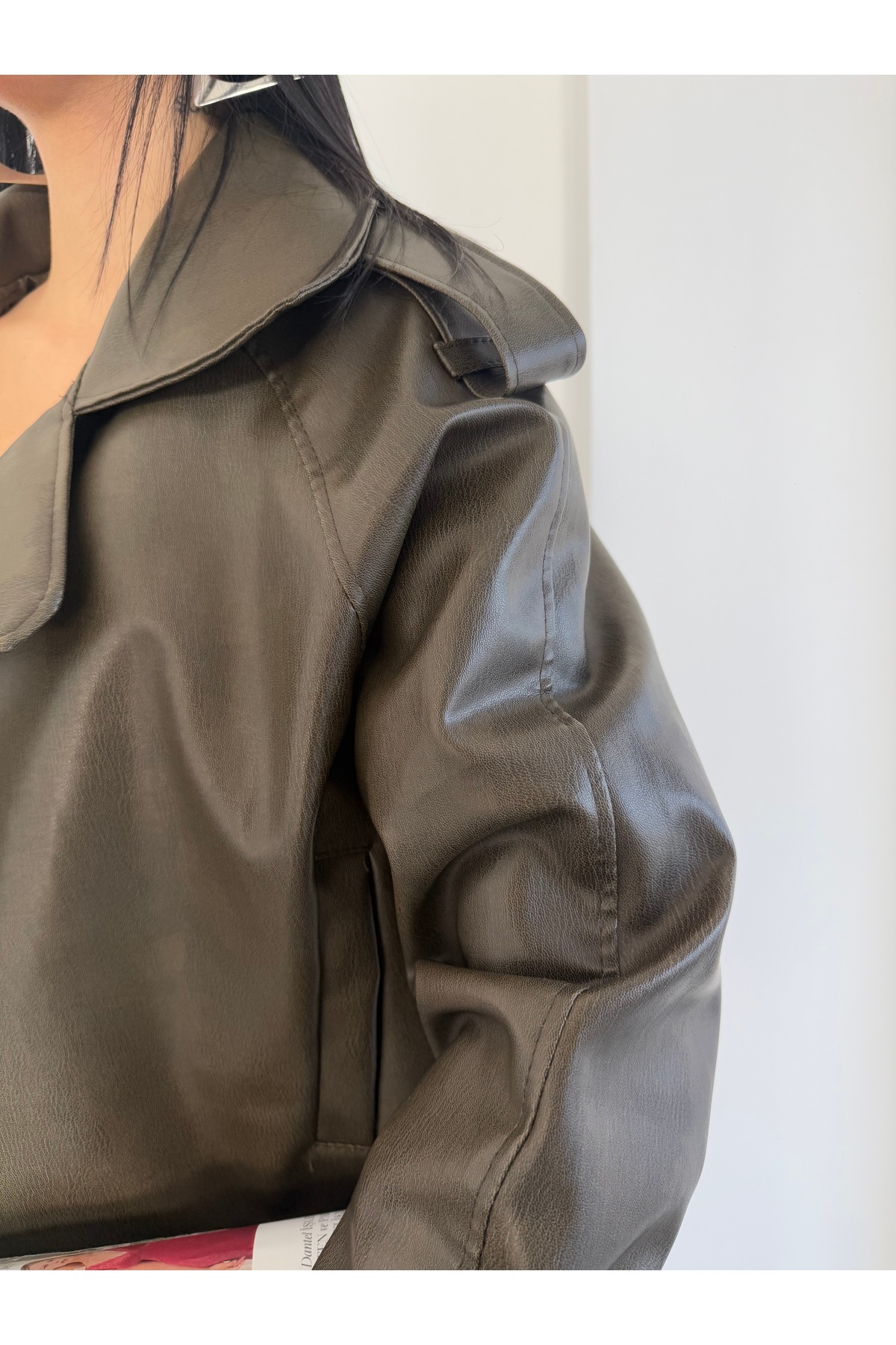 Fermuarlı Oversize Crop Deri Ceket Fermuarlı Oversize Crop Deri Ceket WL589914 L
