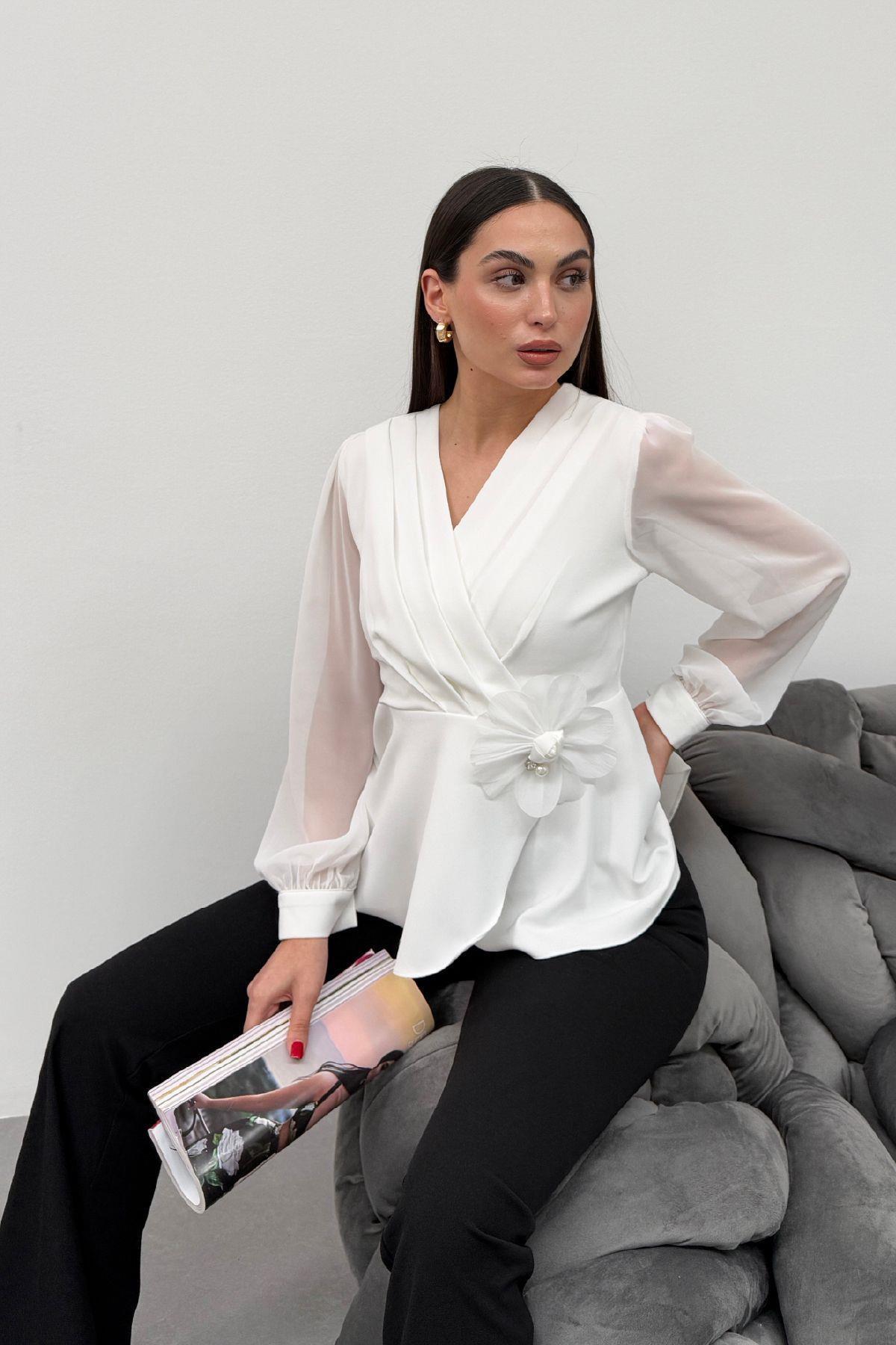 Metal Düğmeli Tül Kollar ve Pilise Detaylı Kadın Bluz 033 Metal Düğmeli Tül Kollar ve Pilise Detaylı Kadın Bluz 033 AMR-STP-033 42