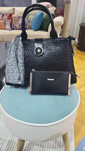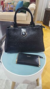 Siyah Rugan Damla Desenli Üç Ayrı Fermuar Bölmeli Tote El Ve Omuz Kadın Çantası Siyah Rugan Damla Desenli Üç Ayrı Fermuar Bölmeli Tote El Ve Omuz Kadın Çantası E-4686-1 Büyük Boy