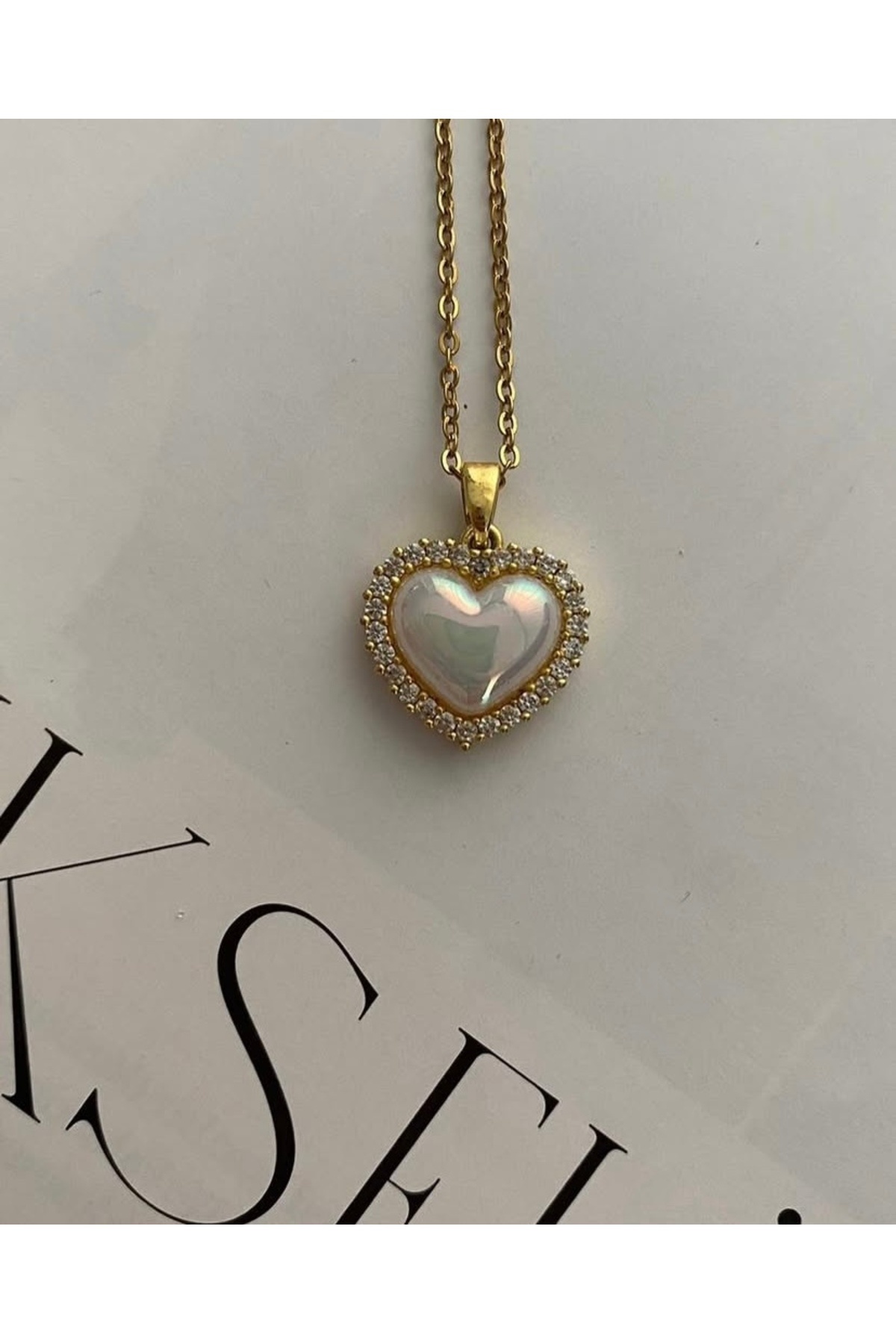 Çelik Kararmaz Beyaz Sedefli Zirkon Taşlı Gold Kalp Kolye(45cm) Çelik Kararmaz Beyaz Sedefli Zirkon Taşlı Gold Kalp Kolye(45cm) sedeflikalpkolye