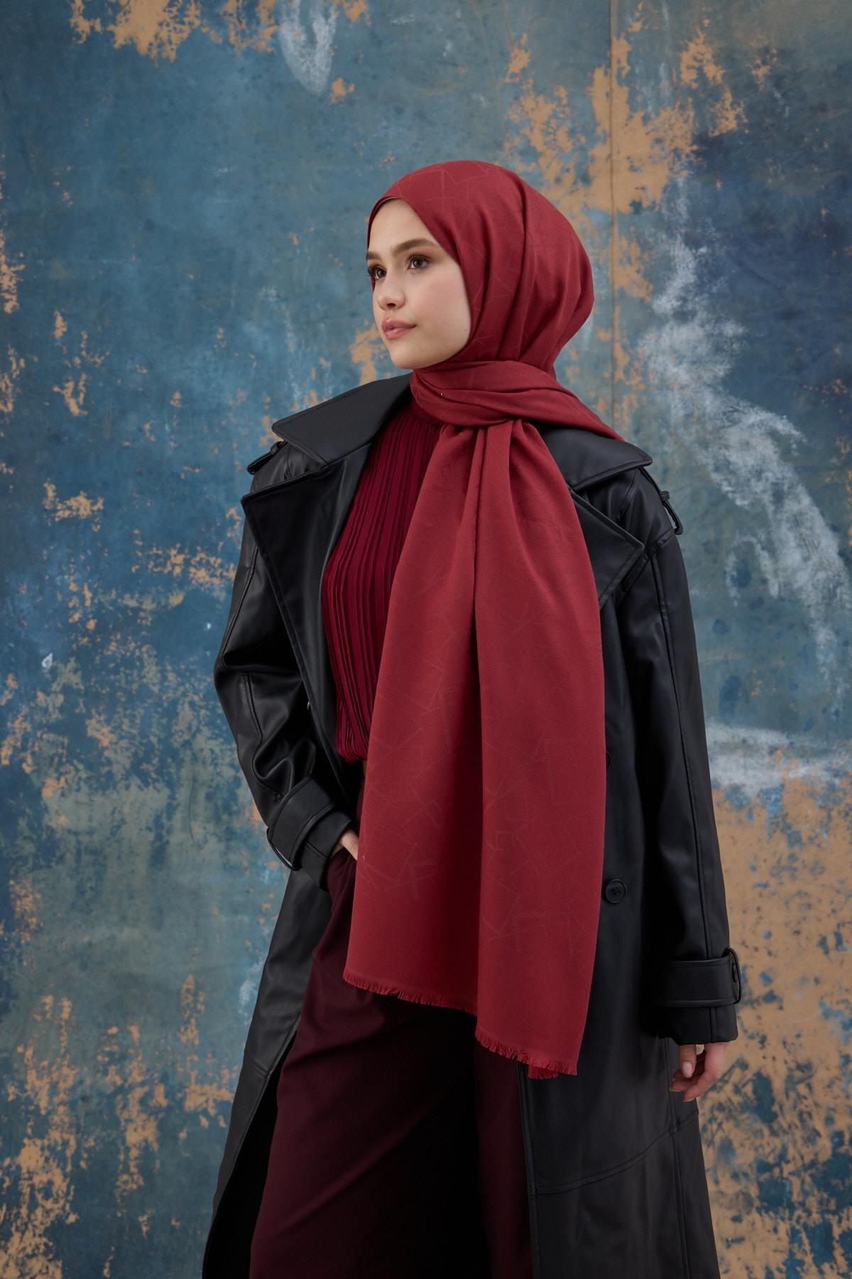 Kare Desen Pamuk Jakar Şal Kırmızı 8012-15 Kare Desen Pamuk Jakar Şal Kırmızı 8012-15 75 x 185