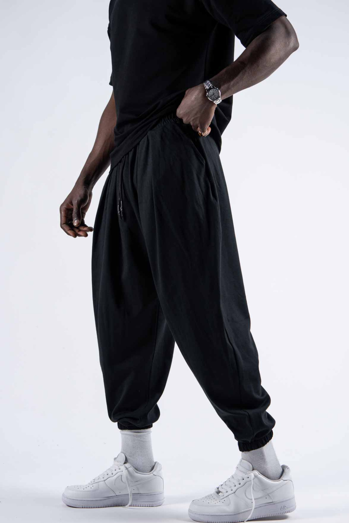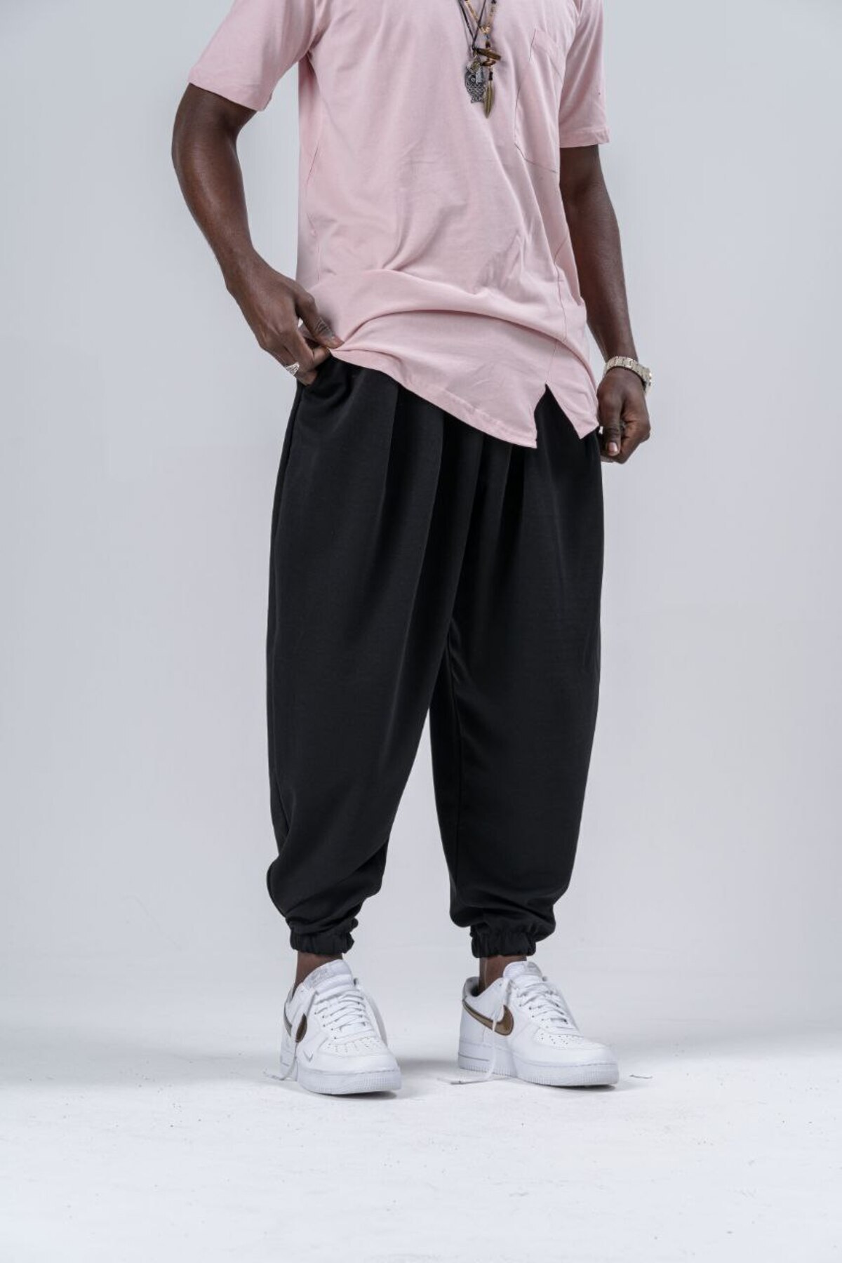 Erkek Bol Pileli Siyah Baggy Şalvar Pantolon Erkek Bol Pileli Siyah Baggy Şalvar Pantolon PL2 2XL