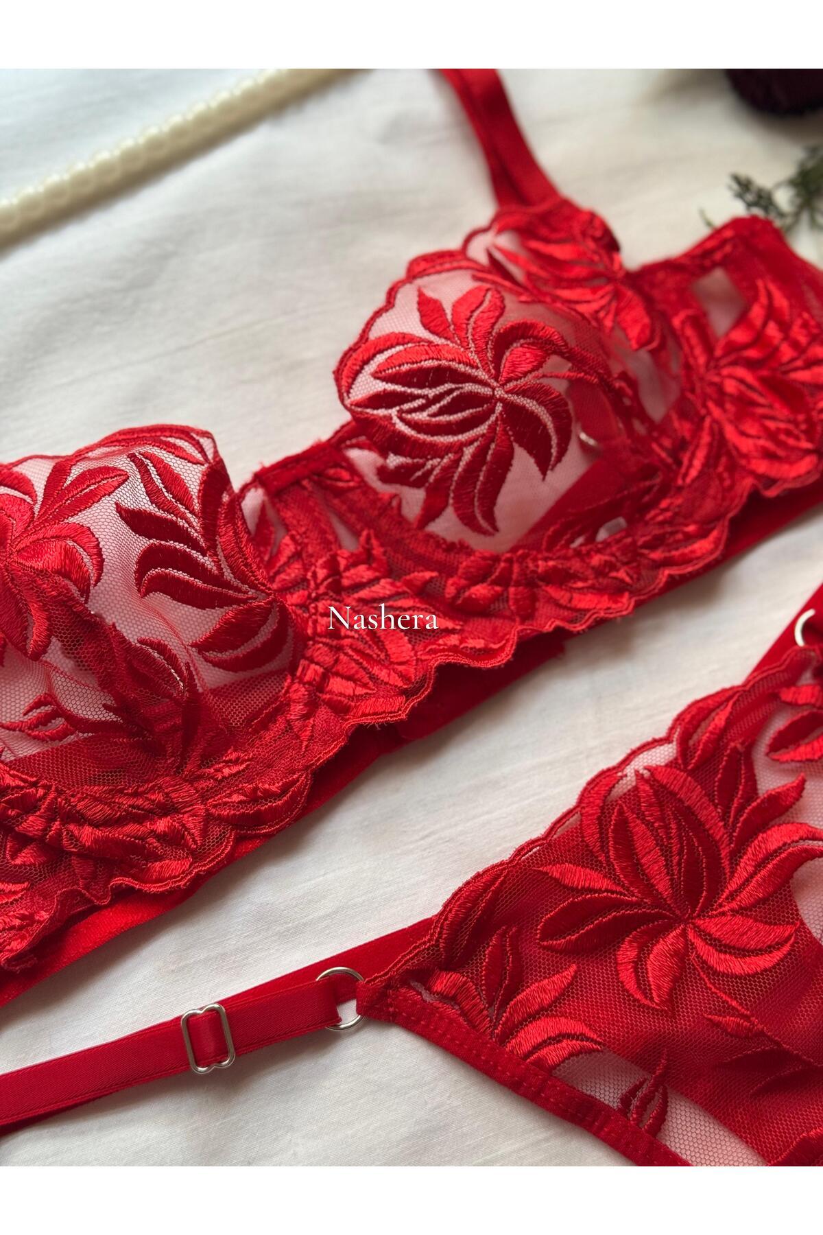 Mia Kırmızı Gül Işlemeli Balenli Iç Çamaşır Takımı Mia Kırmızı Gül Işlemeli Balenli Iç Çamaşır Takımı BLAVP5 90B