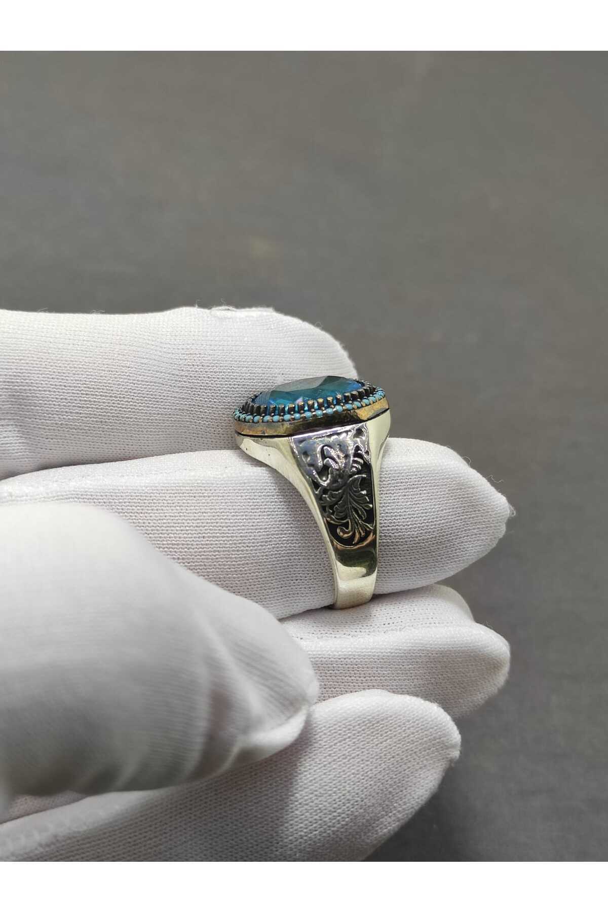 AQUAMARİNE TAŞLI YAN KOLLARI MOTİFLİ 925 AYAR GÜMÜŞ ERKEK YÜZÜĞÜ AQUAMARİNE TAŞLI YAN KOLLARI MOTİFLİ 925 AYAR GÜMÜŞ ERKEK YÜZÜĞÜ LTNT-0712 25