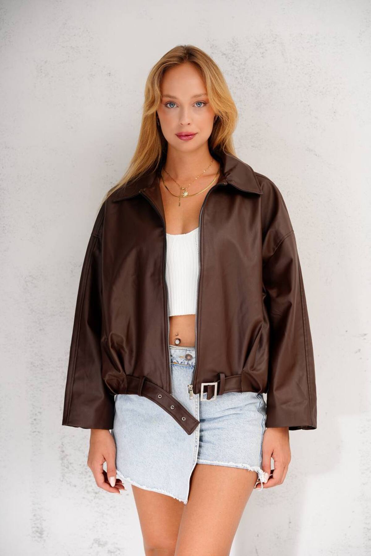 Yanlardan Büzgü Detaylı Deri Ceket Yanlardan Büzgü Detaylı Deri Ceket bzg061 L