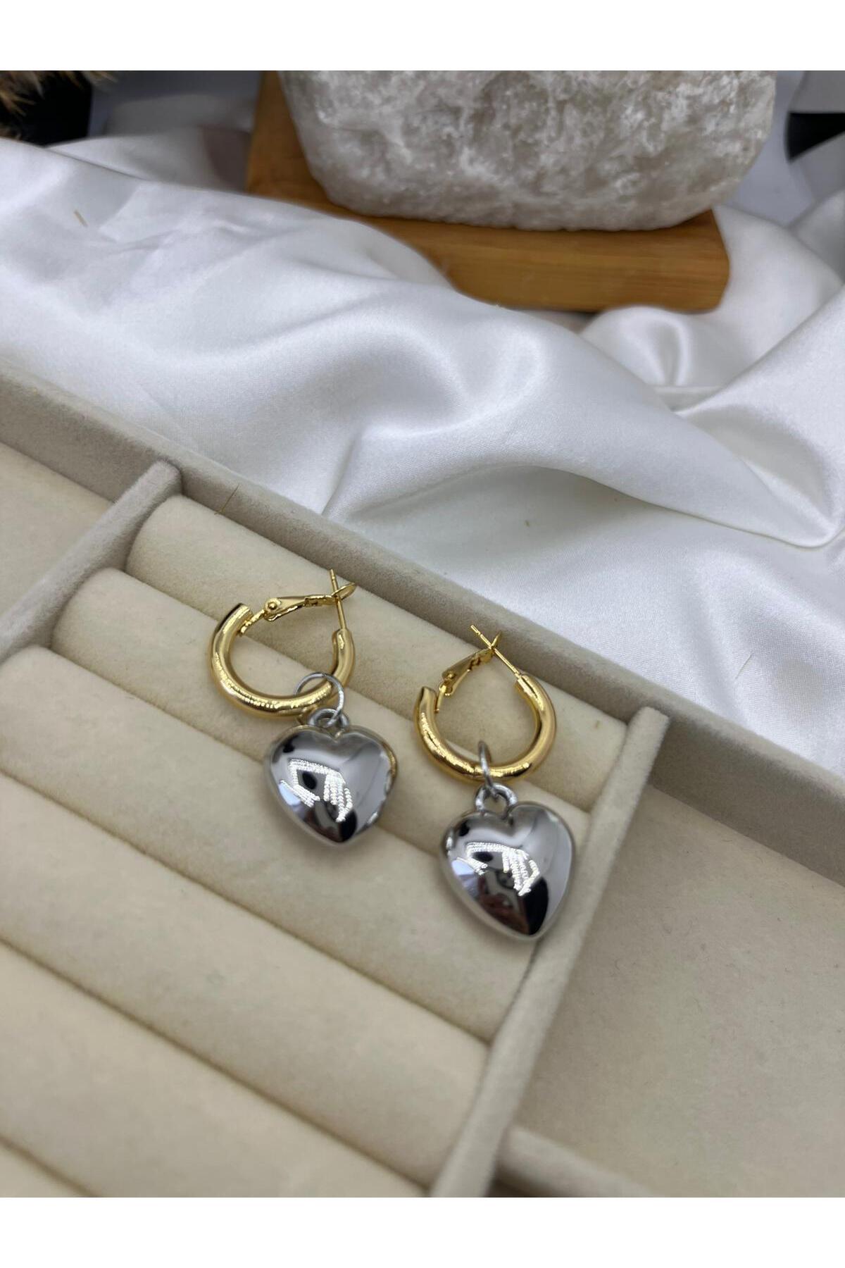 Sallantılı Kalp Detaylı 2li Yarım Halka Altın ve Gümüş Çelik Küpe Sallantılı Kalp Detaylı 2li Yarım Halka Altın ve Gümüş Çelik Küpe BY1GSK100084 0