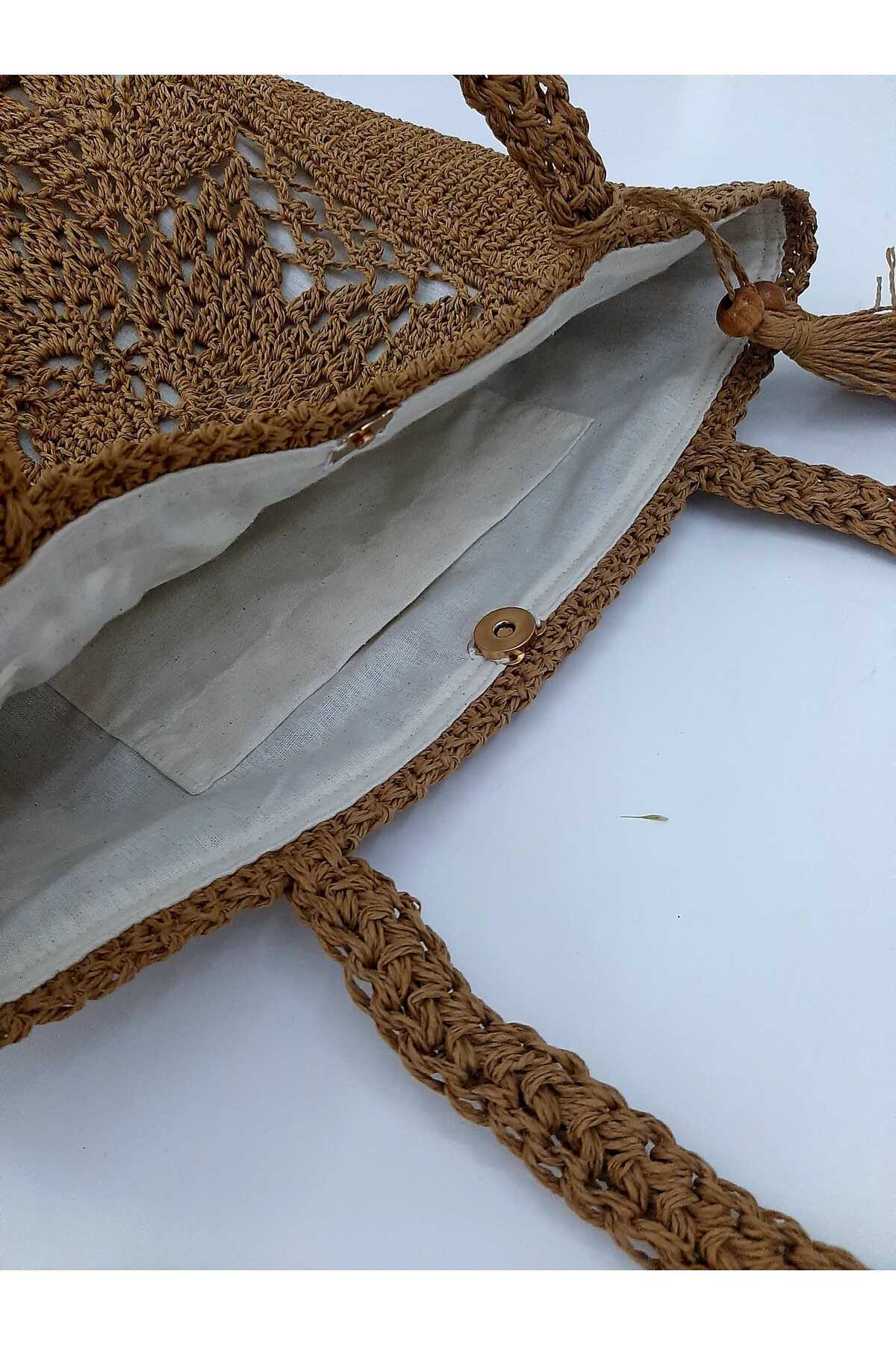 El Örgüsü Kağıt İp Kadın Omuz Çantası (Renk Hasır) El Örgüsü Kağıt İp Kadın Omuz Çantası (Renk Hasır) WWQESRAR13 تک سایز