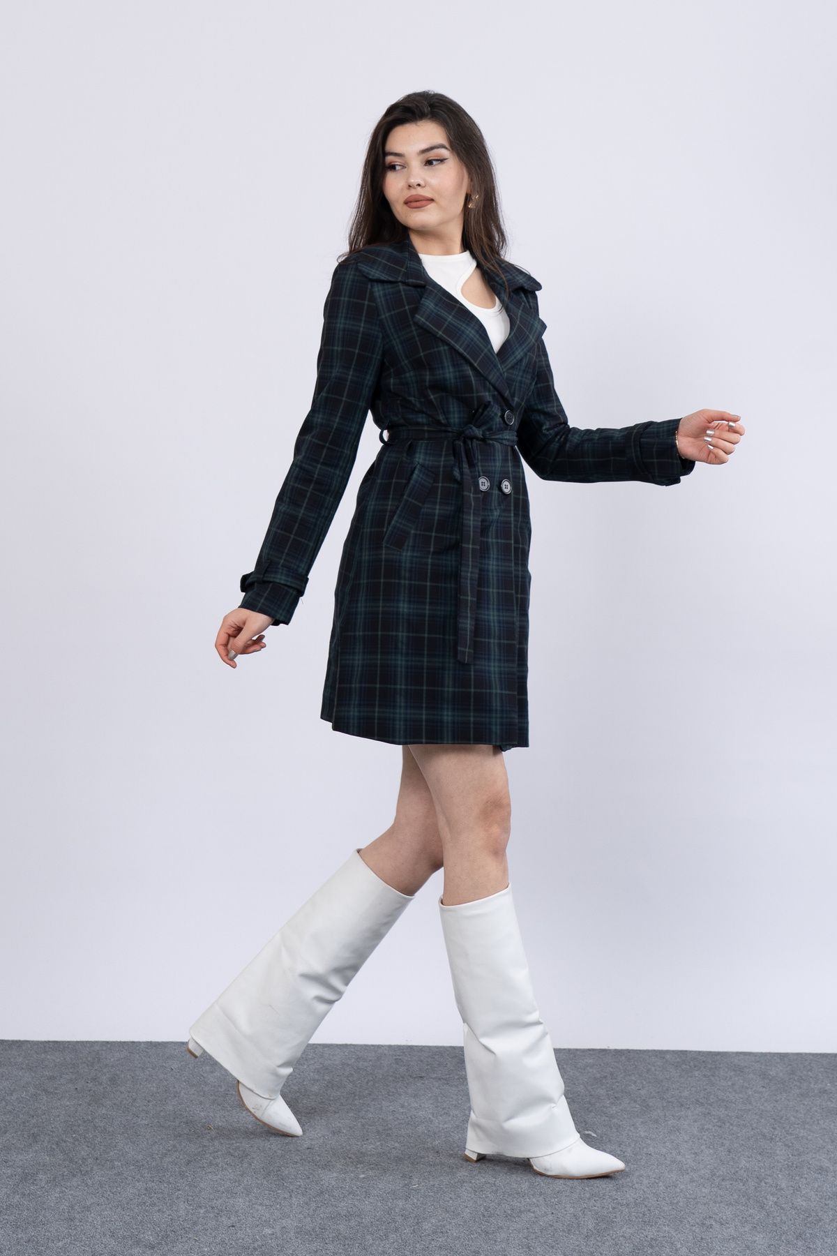 Ekose Desen Beli Kuşaklı Trenc Palto 2576 Ekose Desen Beli Kuşaklı Trenc Palto 2576 24MYAREK2576 42