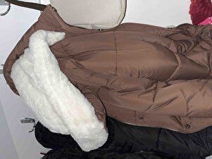 Kapüşonlu İçi Suni Kürklü Fermuarlı Şişme Mont Kapüşonlu İçi Suni Kürklü Fermuarlı Şişme Mont 5WAL20023IW 42