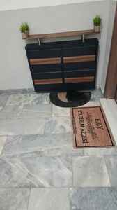 Tablalı 4'lü MDF Kaplamalı Metal Ayakkabılık - Siyah Natural Ceviz Tablalı 4'lü MDF Kaplamalı Metal Ayakkabılık - Siyah Natural Ceviz KZA004 Sürgülü