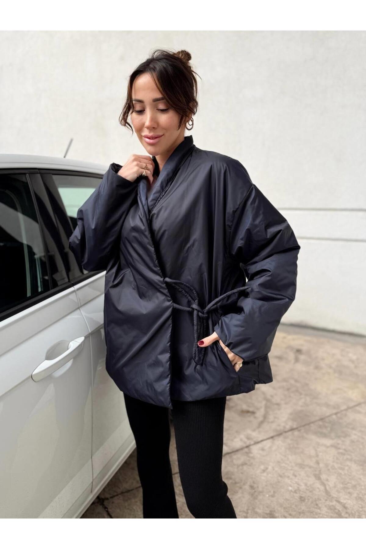Kadın Kruvaze Kimono Bağlamalı Şişme Lacivert Ceket Kadın Kruvaze Kimono Bağlamalı Şişme Lacivert Ceket 24WEL2861 L