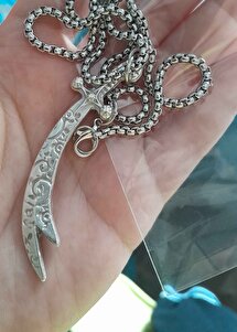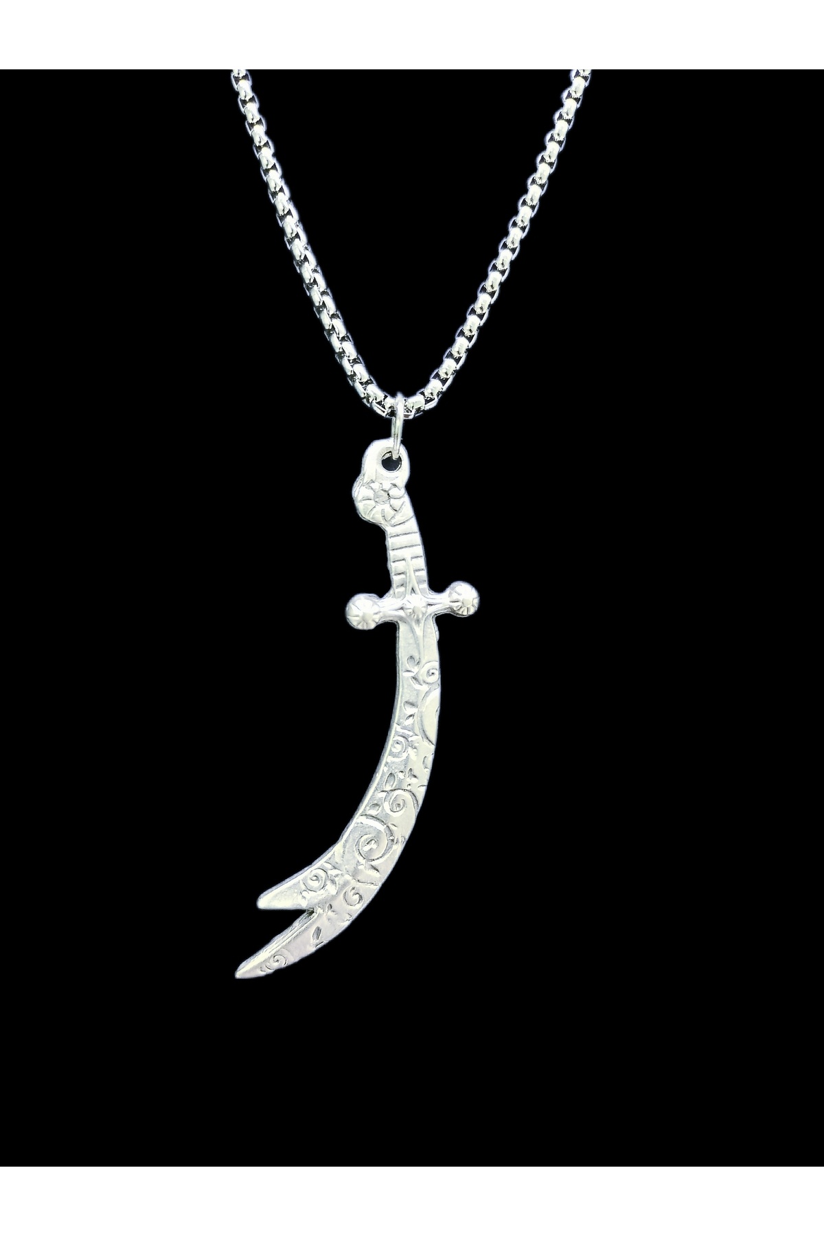 Unisex Kararmaz Çelik Zincirli Zülfikar Kılıç Sembollü Kaliteli Gümüş Renk Unisex Kararmaz Çelik Zincirli Zülfikar Kılıç Sembollü Kaliteli Gümüş Renk çeli71 60 cm