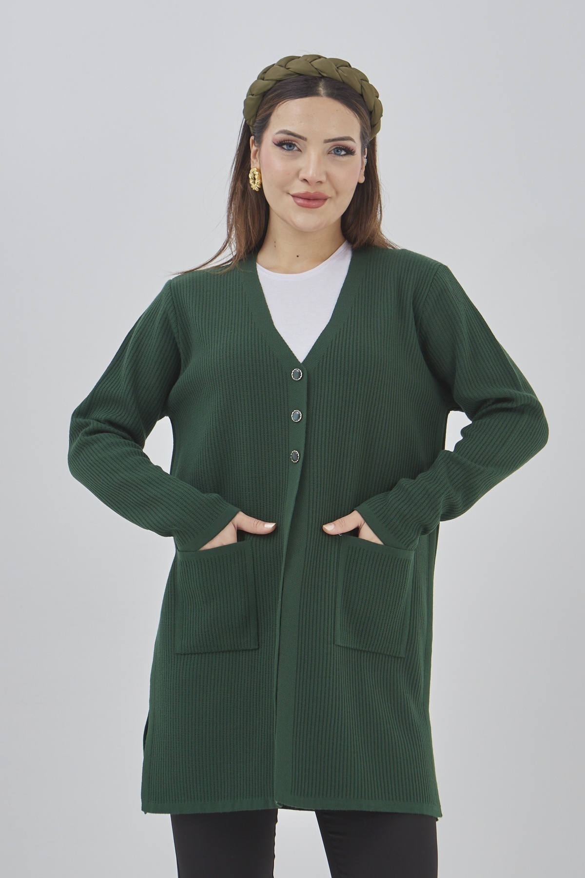 Kadın Mevsimlik Uzun Triko Cepli Düğmeli Esnek Hırka Kadın Mevsimlik Uzun Triko Cepli Düğmeli Esnek Hırka P794S6933 3XL