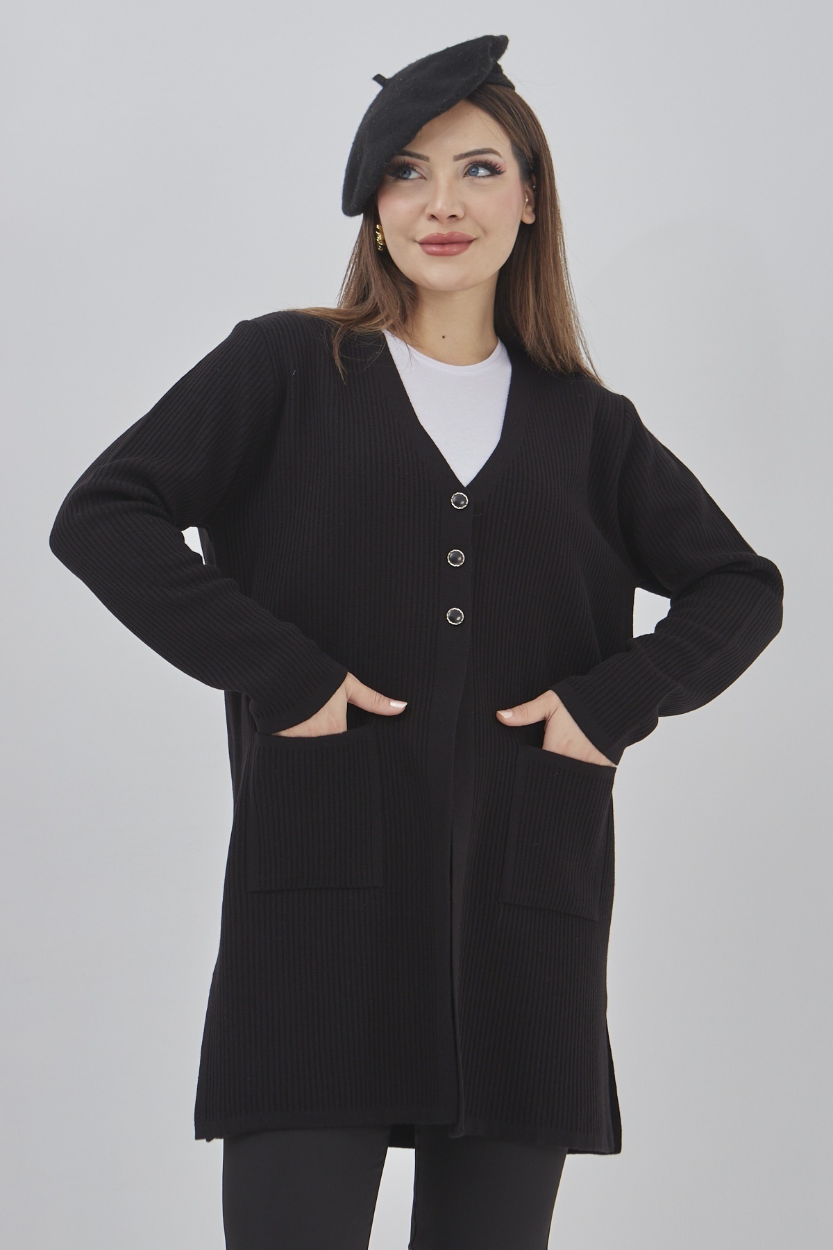Kadın Mevsimlik Uzun Cepli Düğmeli Esnek Hırka Kadın Mevsimlik Uzun Cepli Düğmeli Esnek Hırka P794S6933 3XL