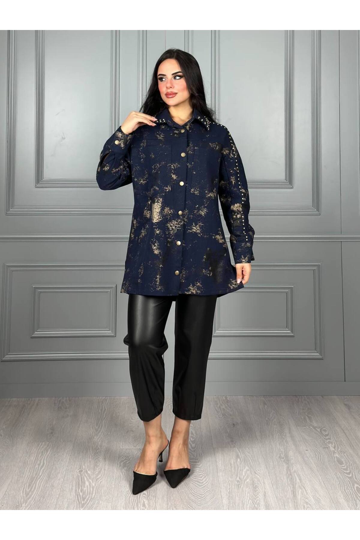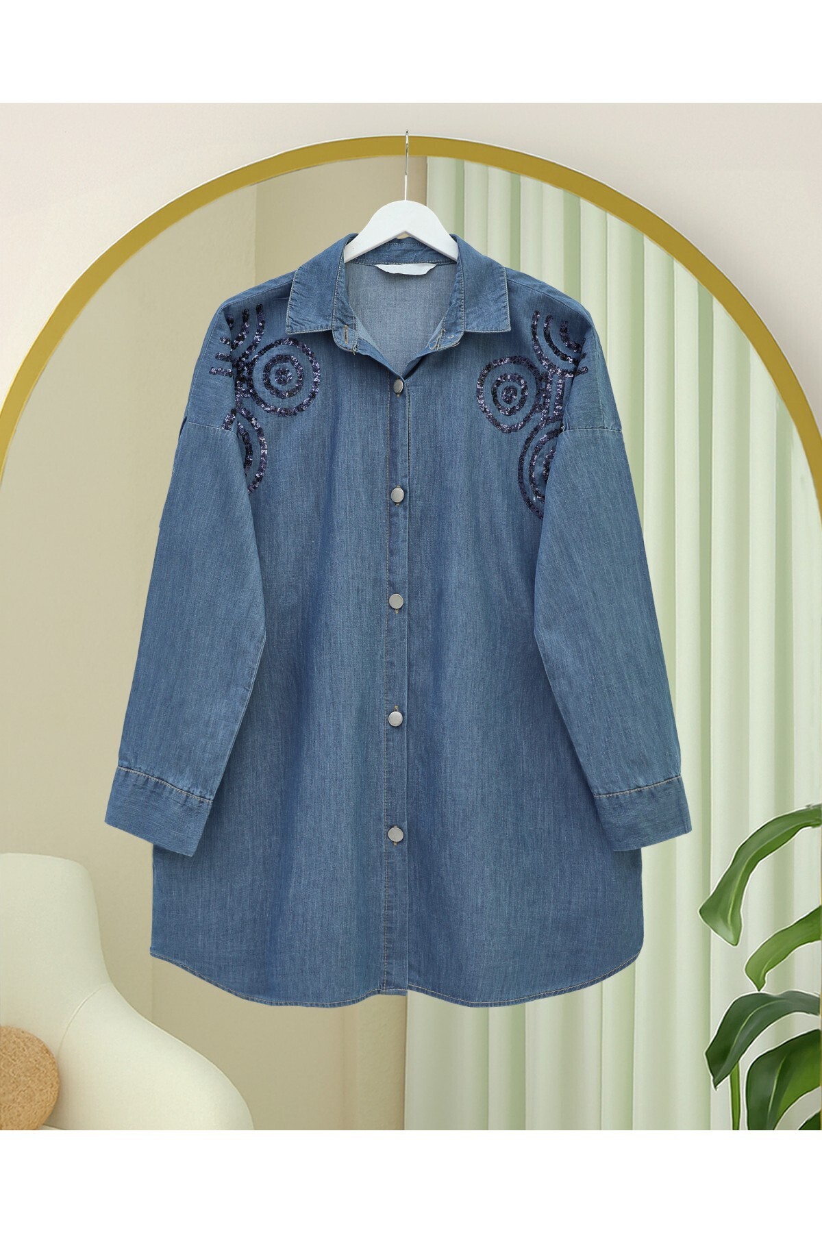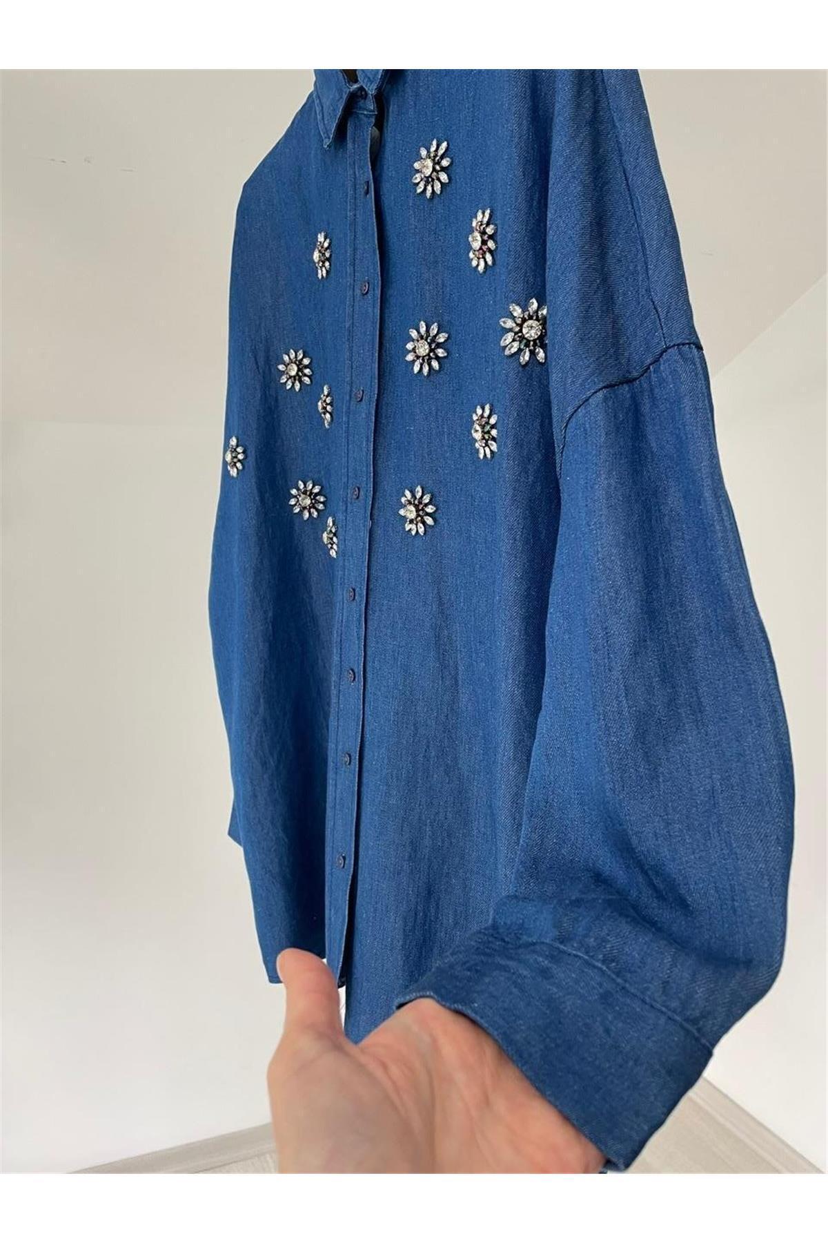 Taşlı Çiçek Detaylı Oversize Gömlek Orfeonegro Taşlı Çiçek Detaylı Oversize Gömlek Orfeonegro ORF32993 Standart