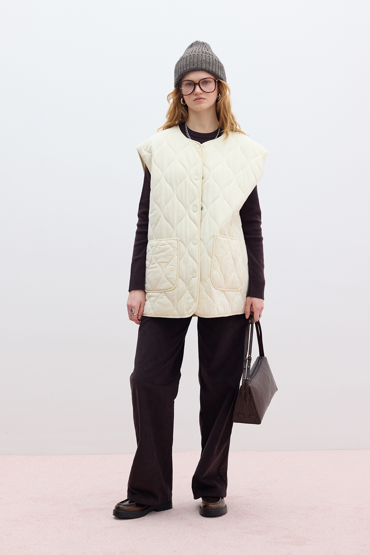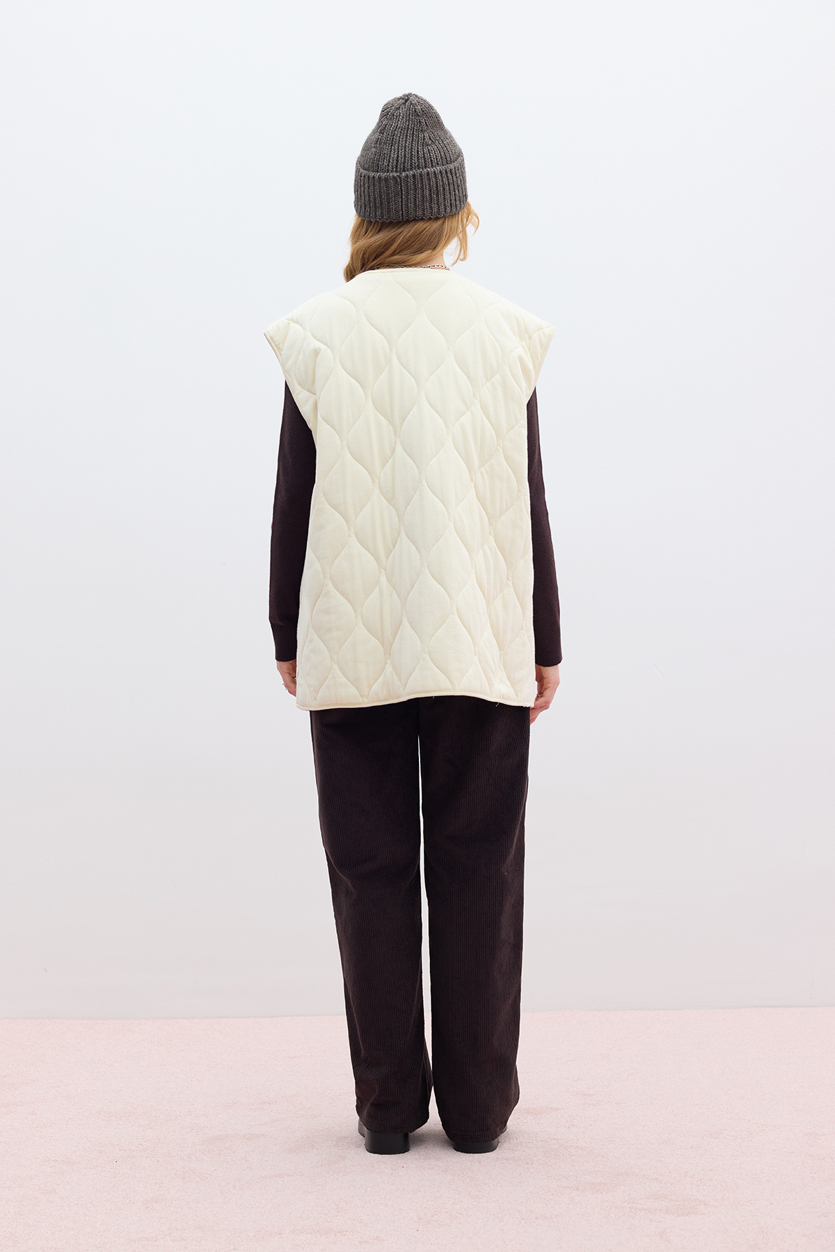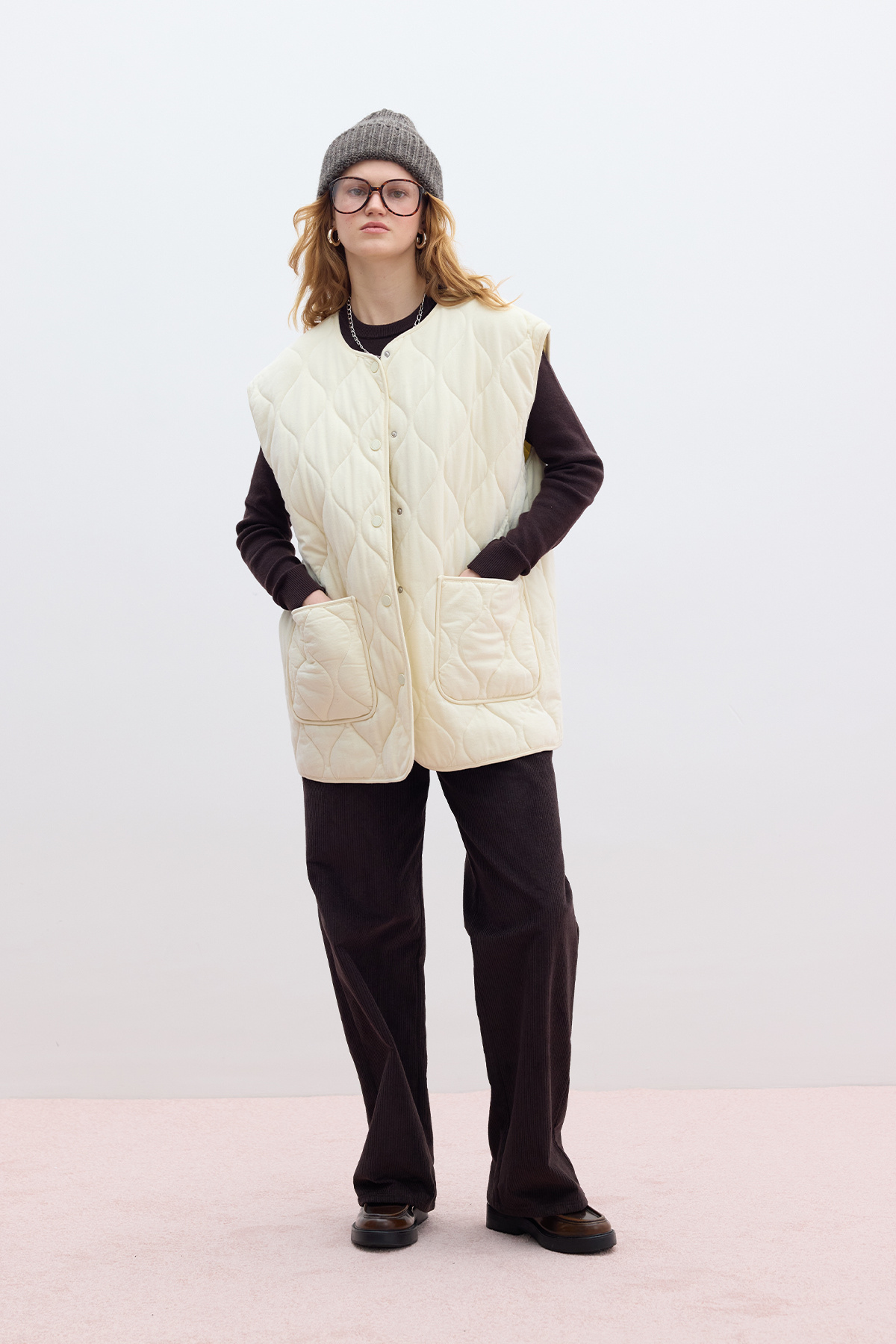 KAPİTONE CEPLİ YELEK VANİLYA KAPİTONE CEPLİ YELEK VANİLYA M-4525 M/L
