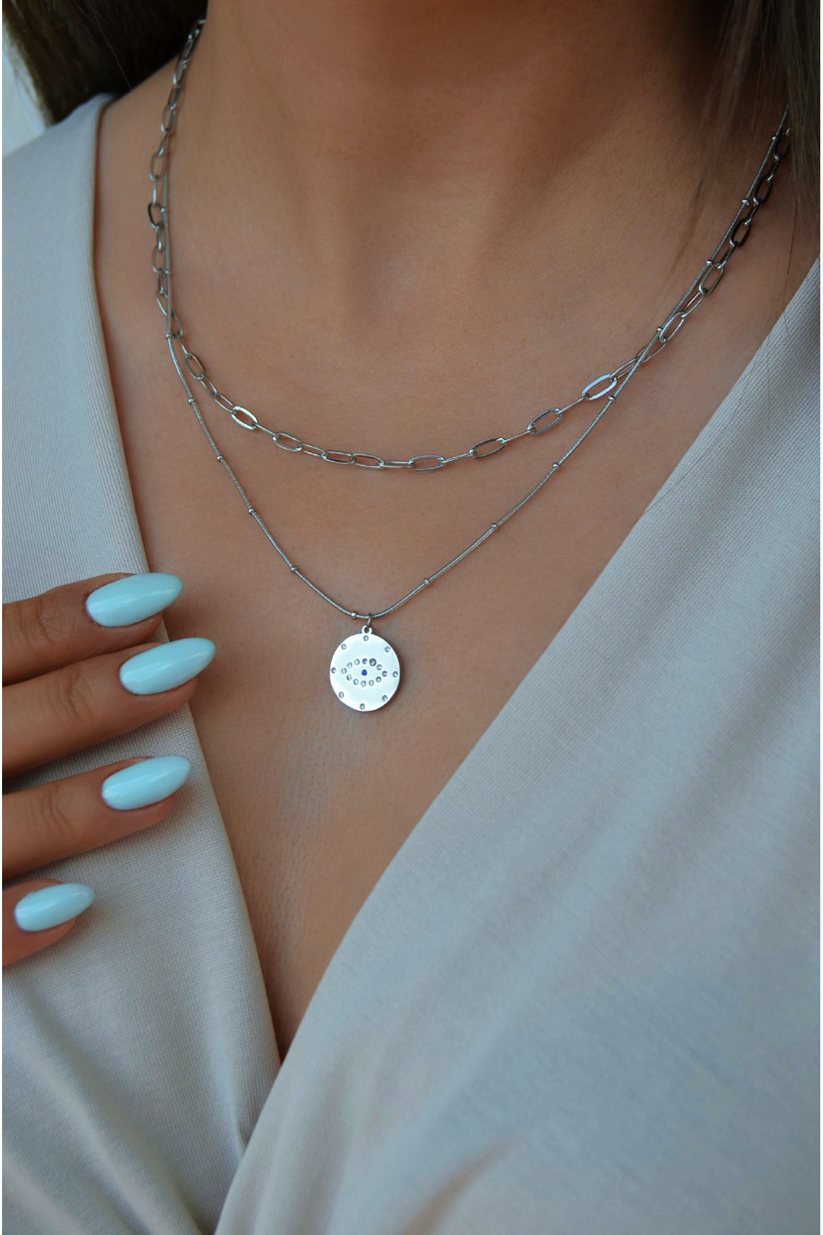 İki Sıralı Çelik Kolye İkili Göz Figürlü Madalyon ve Ataç Zincir Kolye Gümüş Renk İki Sıralı Çelik Kolye İkili Göz Figürlü Madalyon ve Ataç Zincir Kolye Gümüş Renk 02012025CK تک سایز