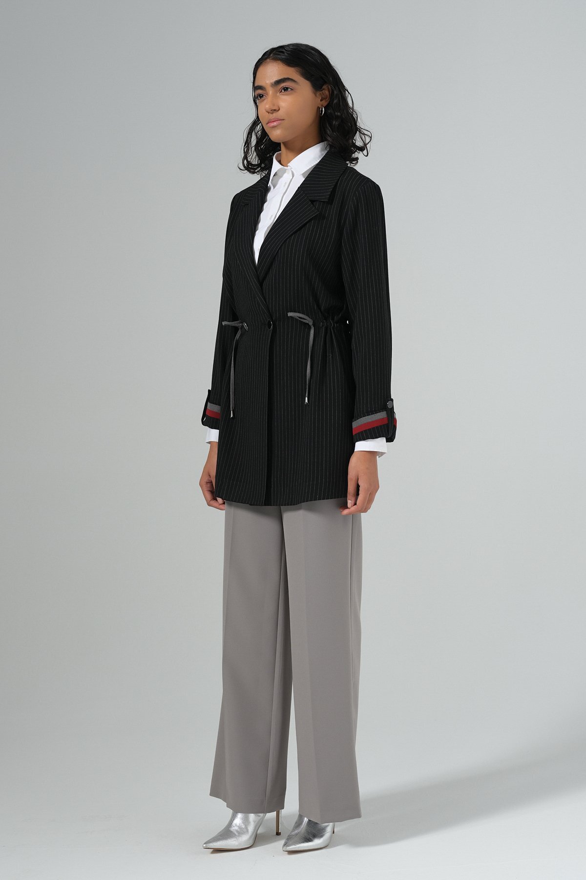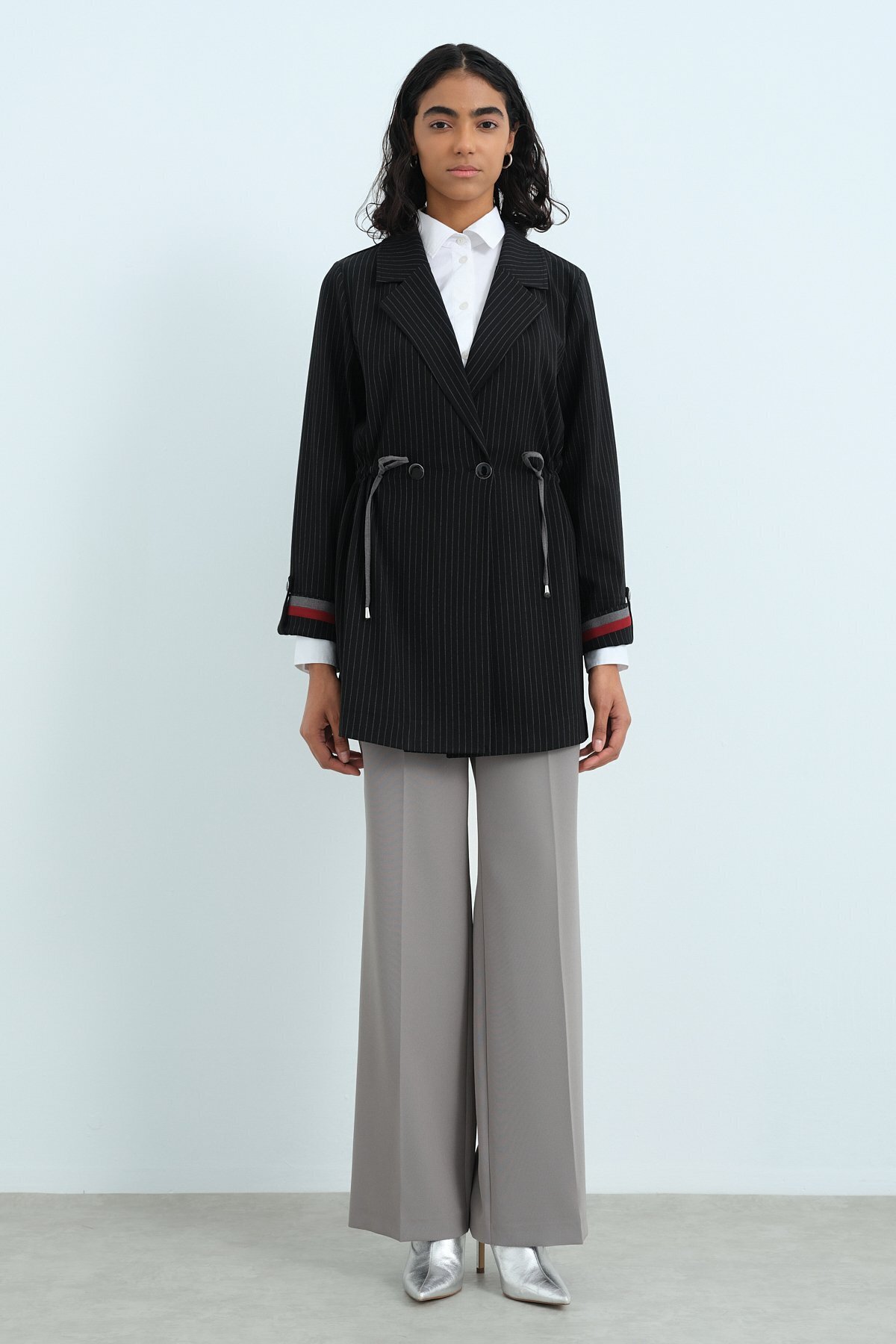 Beli Büzgülü Kruvaze Ceket Siyah Beli Büzgülü Kruvaze Ceket Siyah 242CK4208NH.1 42