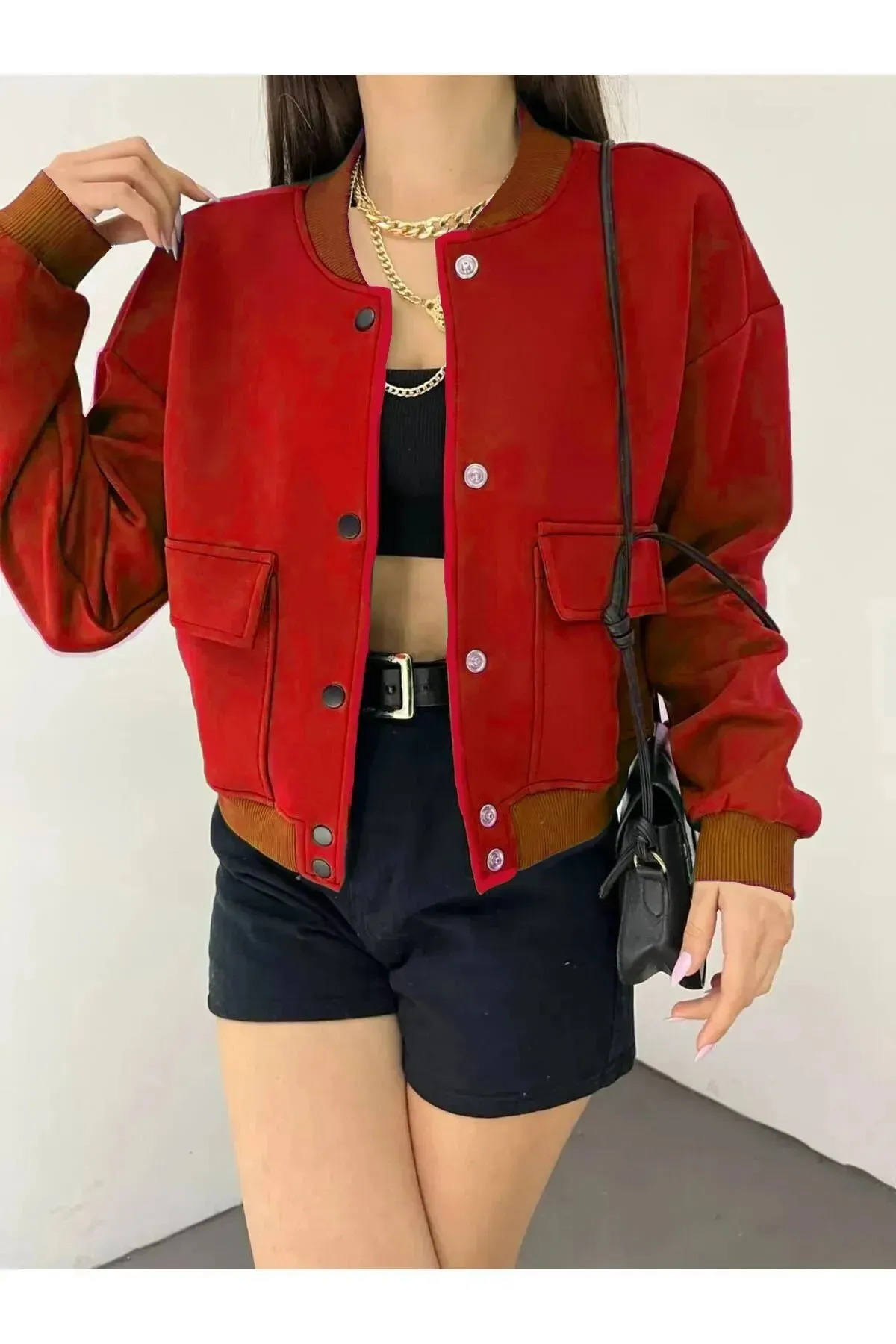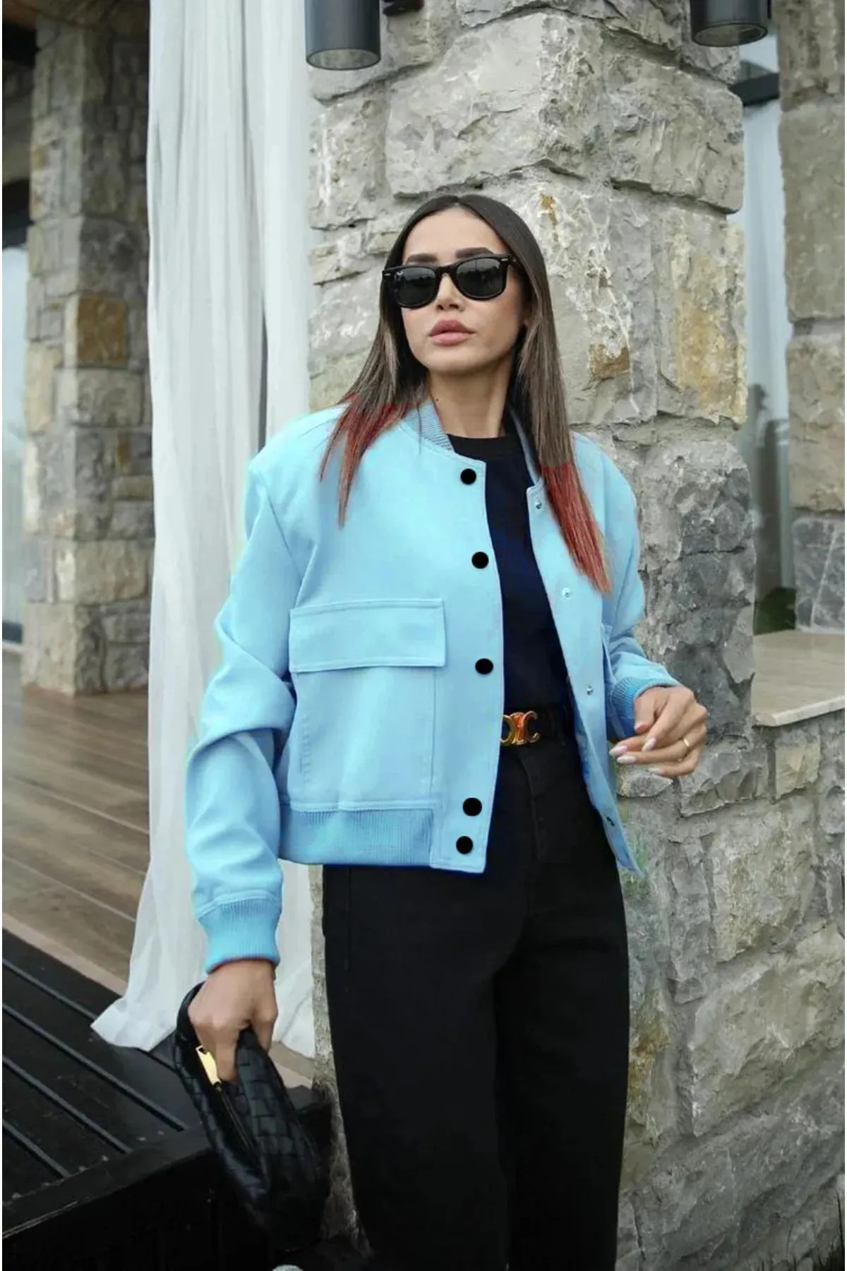 KOPYA - Dalgıç Kumaş Çift Cepli Bomber Ceket KOPYA - Dalgıç Kumaş Çift Cepli Bomber Ceket Dkç19553 L