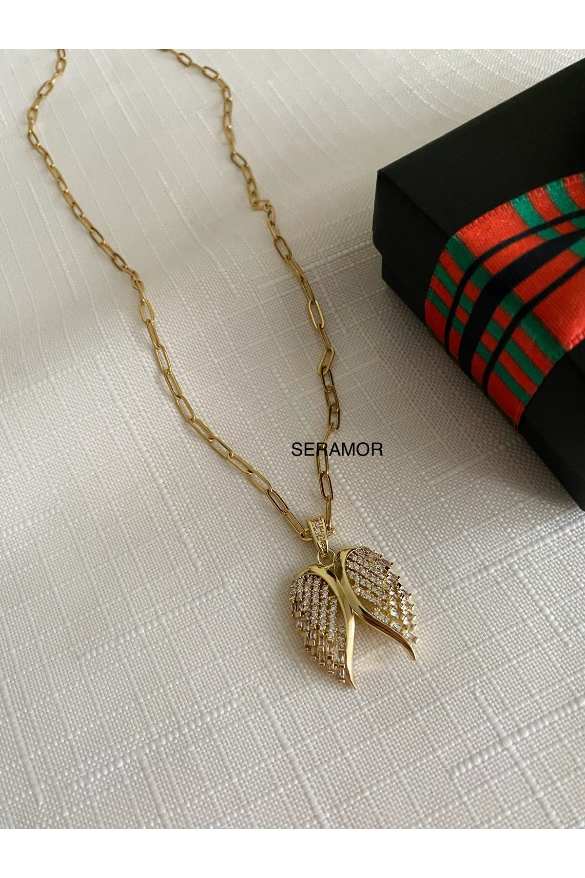 Kararmaz çelik 50 cm ataç zincirli ışıltılı melek kanadı kolye Kararmaz çelik 50 cm ataç zincirli ışıltılı melek kanadı kolye SRMRMLK144481 50 cm