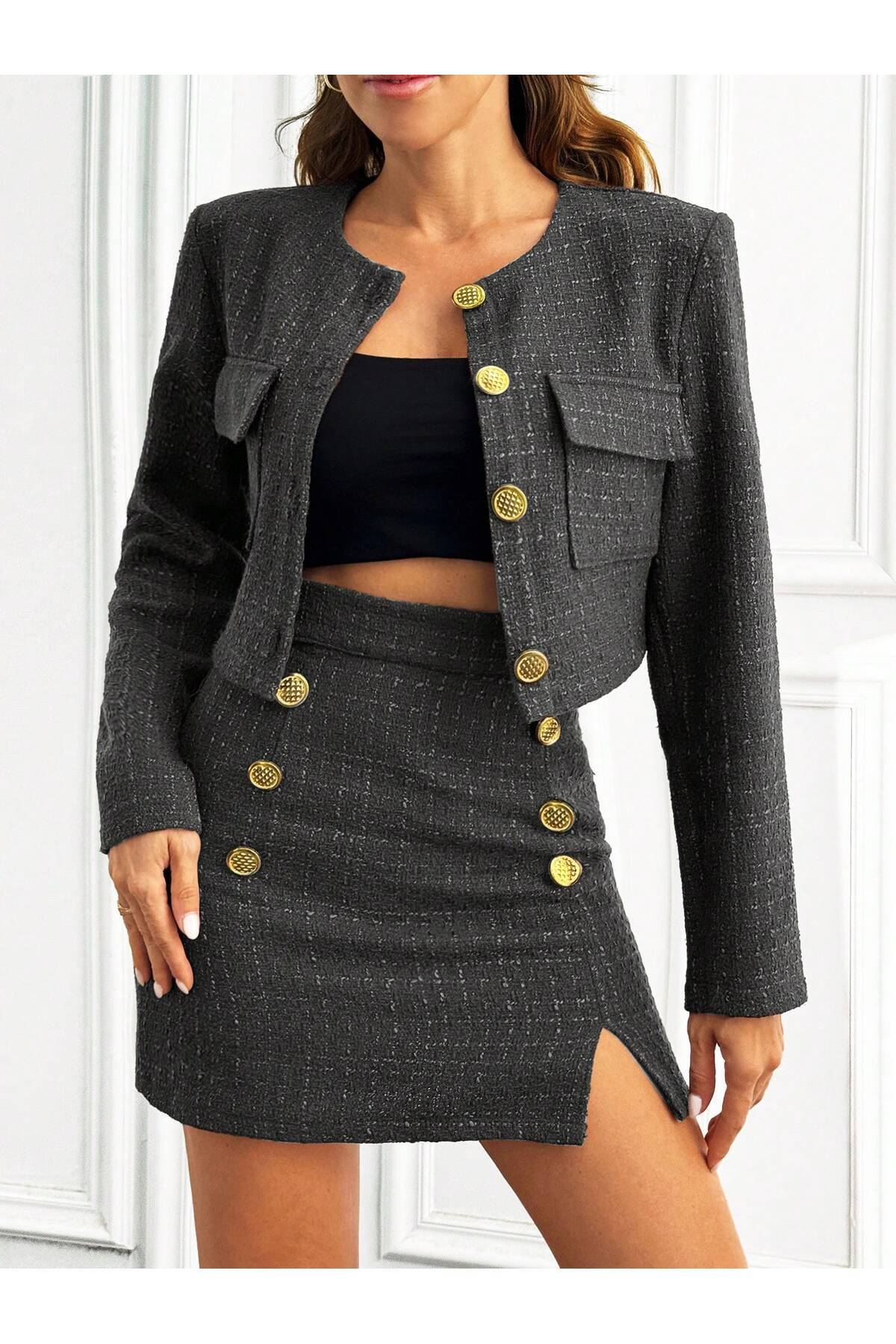 New Statıon ceket-bluz-etek üçlü set tüvit kumaş New Statıon ceket-bluz-etek üçlü set tüvit kumaş Model 4010 XL