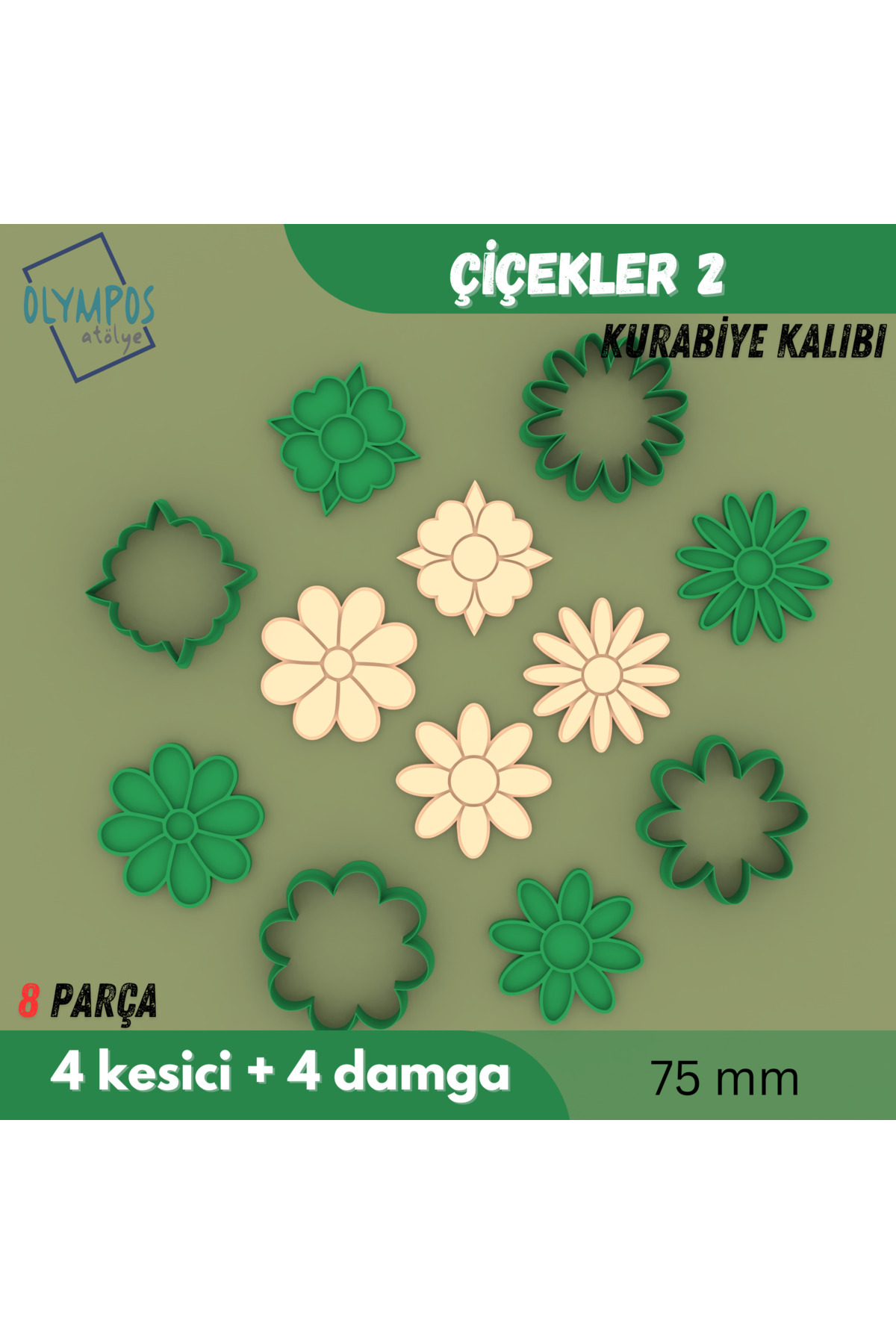 Çiçekler 2 (damgalı) | 8 Parça | Kurabiye - Şeker Hamuru - Oyun Hamuru Kalıbı Seti Çiçekler 2 (damgalı) | 8 Parça | Kurabiye - Şeker Hamuru - Oyun Hamuru Kalıbı Seti OAKK0030 تک سایز