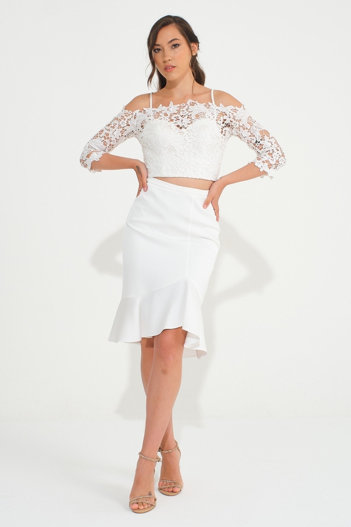 Omuz Detaylı Kısa Dantel Abiye Elbise Omuz Detaylı Kısa Dantel Abiye Elbise 39652 42