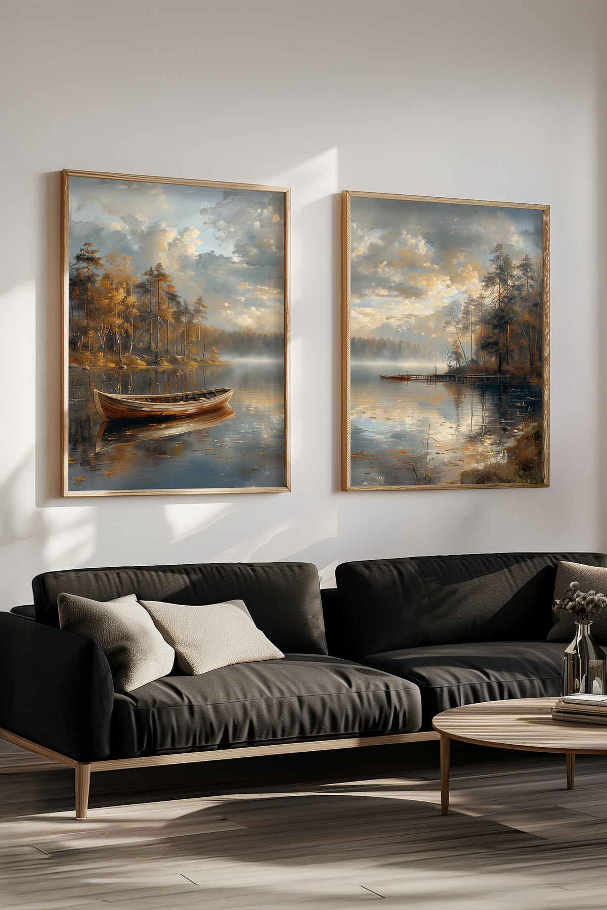 Siyah ahşap çerçeveli 2'li yağlıboya efektli vintage manzara tablo yuna18 Siyah ahşap çerçeveli 2'li yağlıboya efektli vintage manzara tablo yuna18 50 x 70