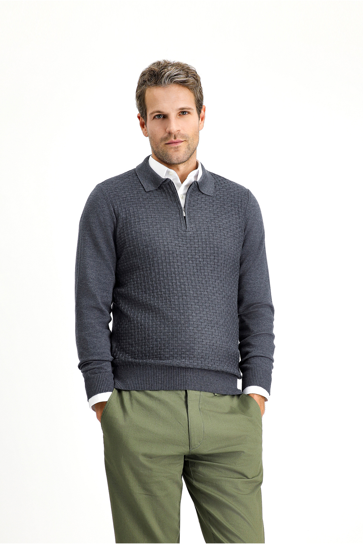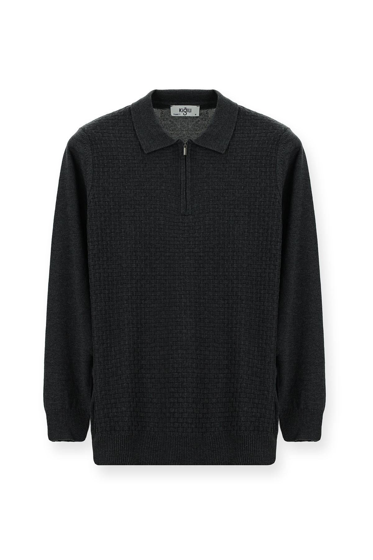 Polo Yaka Regular Fit Fermuarlı Desenli Pamuklu Triko Kazak Polo Yaka Regular Fit Fermuarlı Desenli Pamuklu Triko Kazak KK25DBH0DS003 7XL