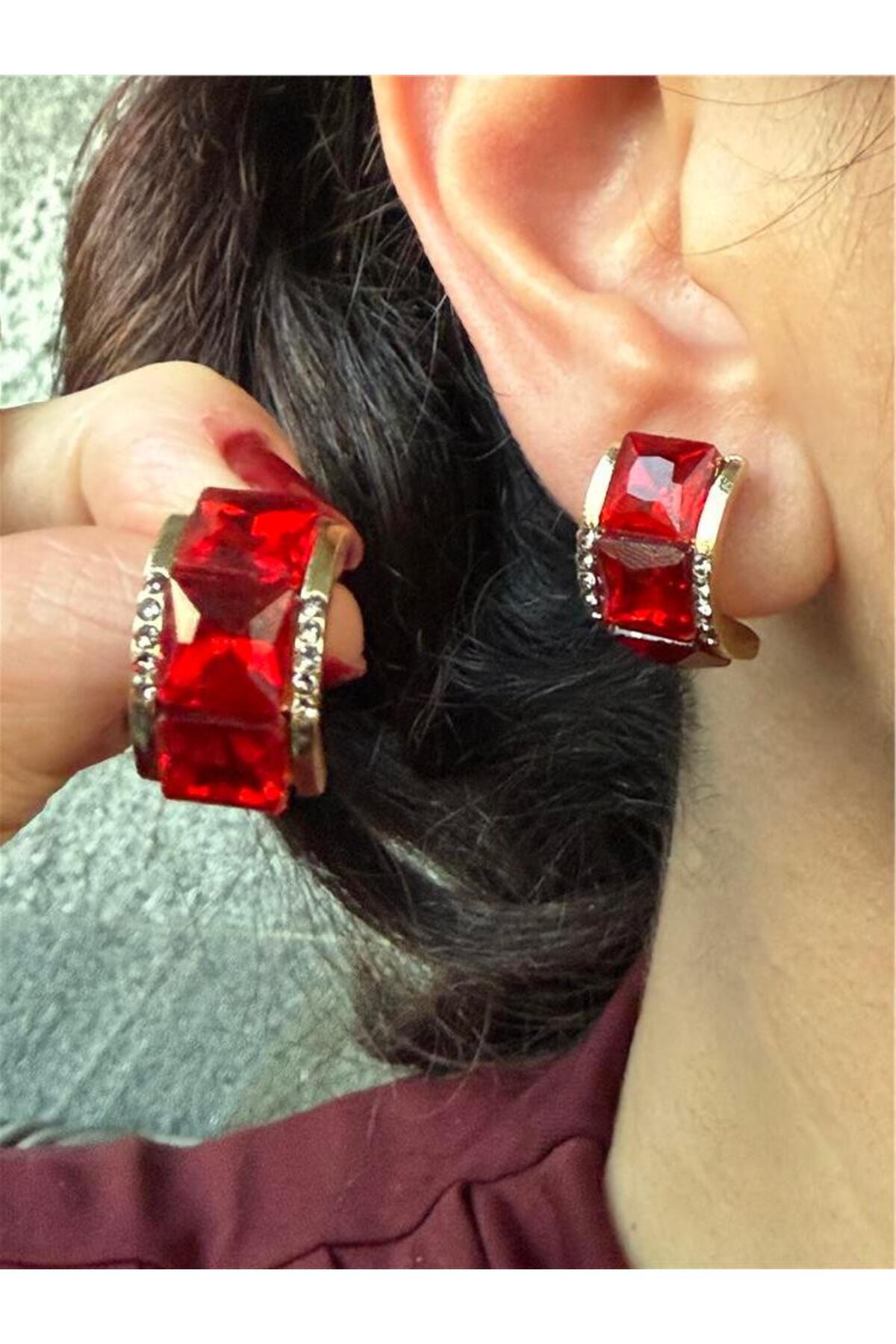 Kırmızı Kristal Baget Taşlı Halka Küpe Kırmızı Kristal Baget Taşlı Halka Küpe 25A018 تک سایز