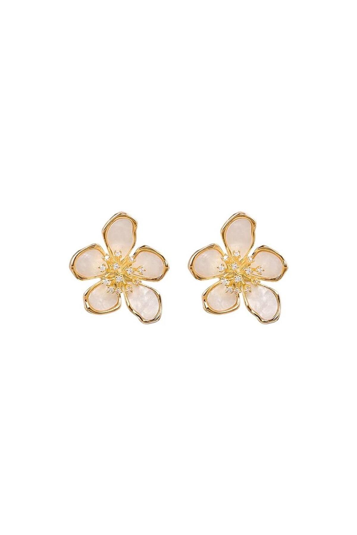Beyaz Taşlı Çiçek Küpe Beyaz Taşlı Çiçek Küpe 25A131 تک سایز
