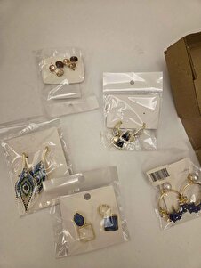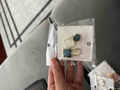 Mavi Beyaz Buğulu Taşlı Asimetrik Küpe Mavi Beyaz Buğulu Taşlı Asimetrik Küpe 25A077 تک سایز