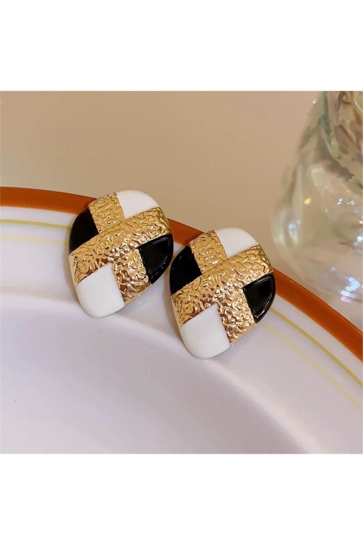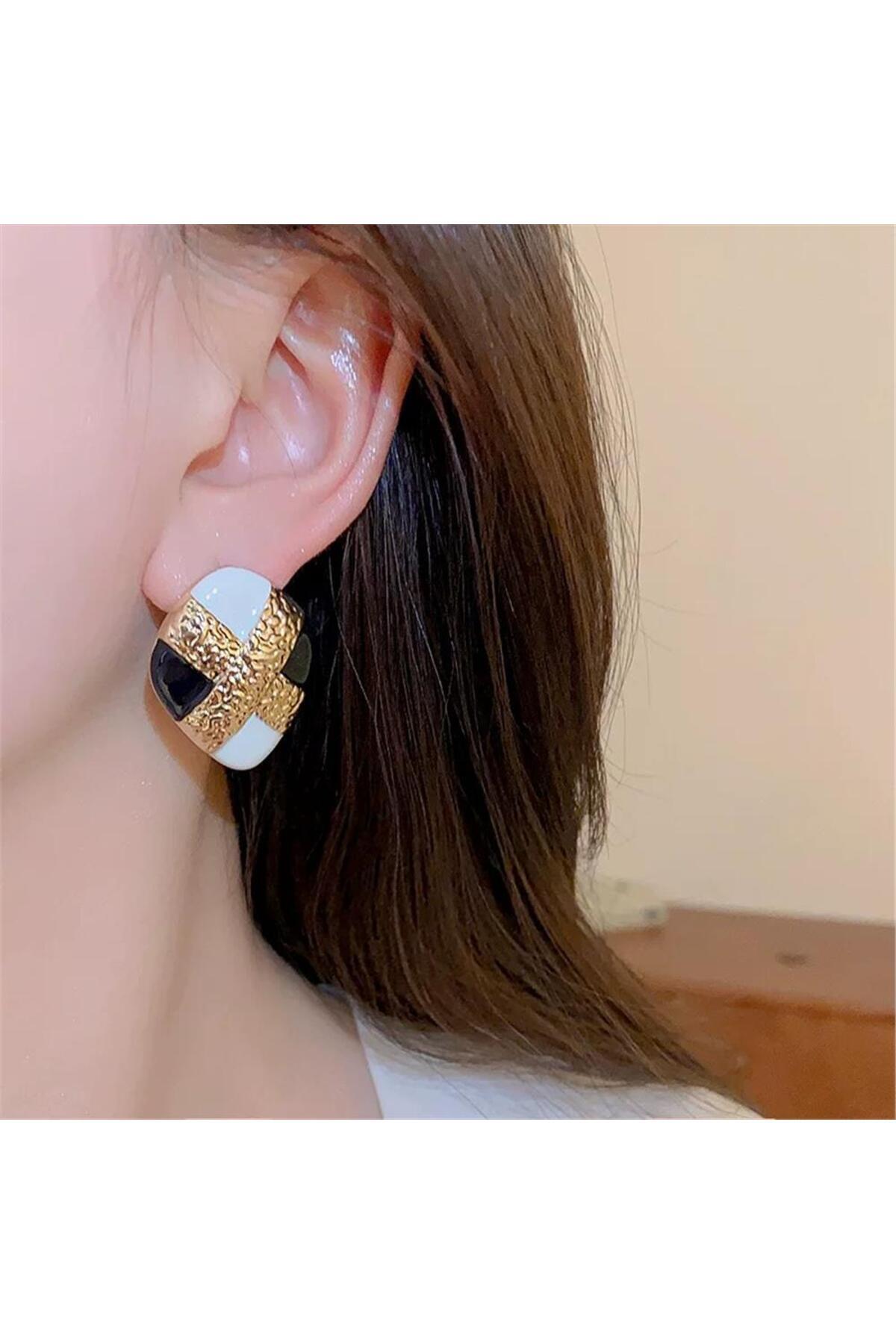 Siyah Beyaz Gold Çaprazlı Vintage Küpe Siyah Beyaz Gold Çaprazlı Vintage Küpe 25A074 تک سایز