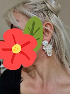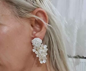 Krem Çiçekli Sallantılı Küpe Krem Çiçekli Sallantılı Küpe 25A216 تک سایز