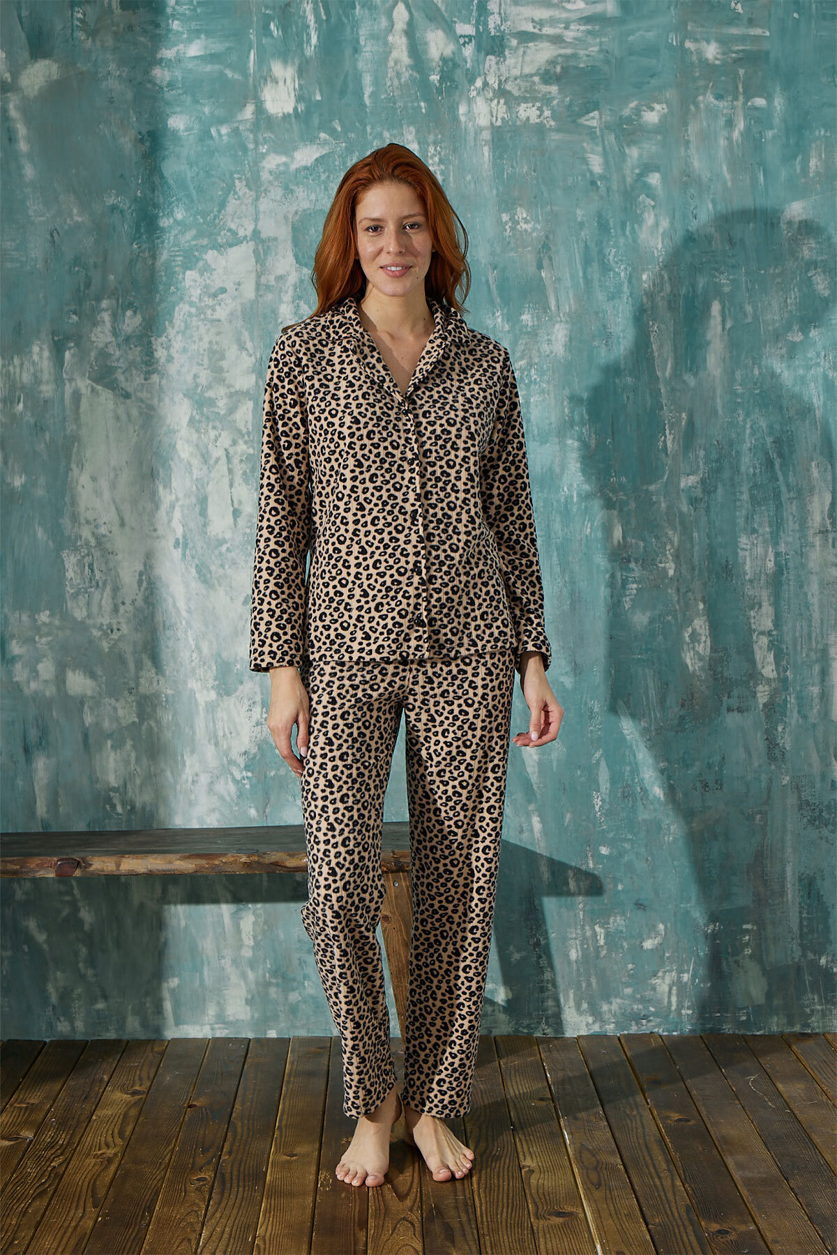 Kadın Uzun Kol Süet Gömlek Yaka Siyah Pijama Takımı C2T0N5O01-24 Kadın Uzun Kol Süet Gömlek Yaka Siyah Pijama Takımı C2T0N5O01-24 C2T0N5O01-CX 2XL