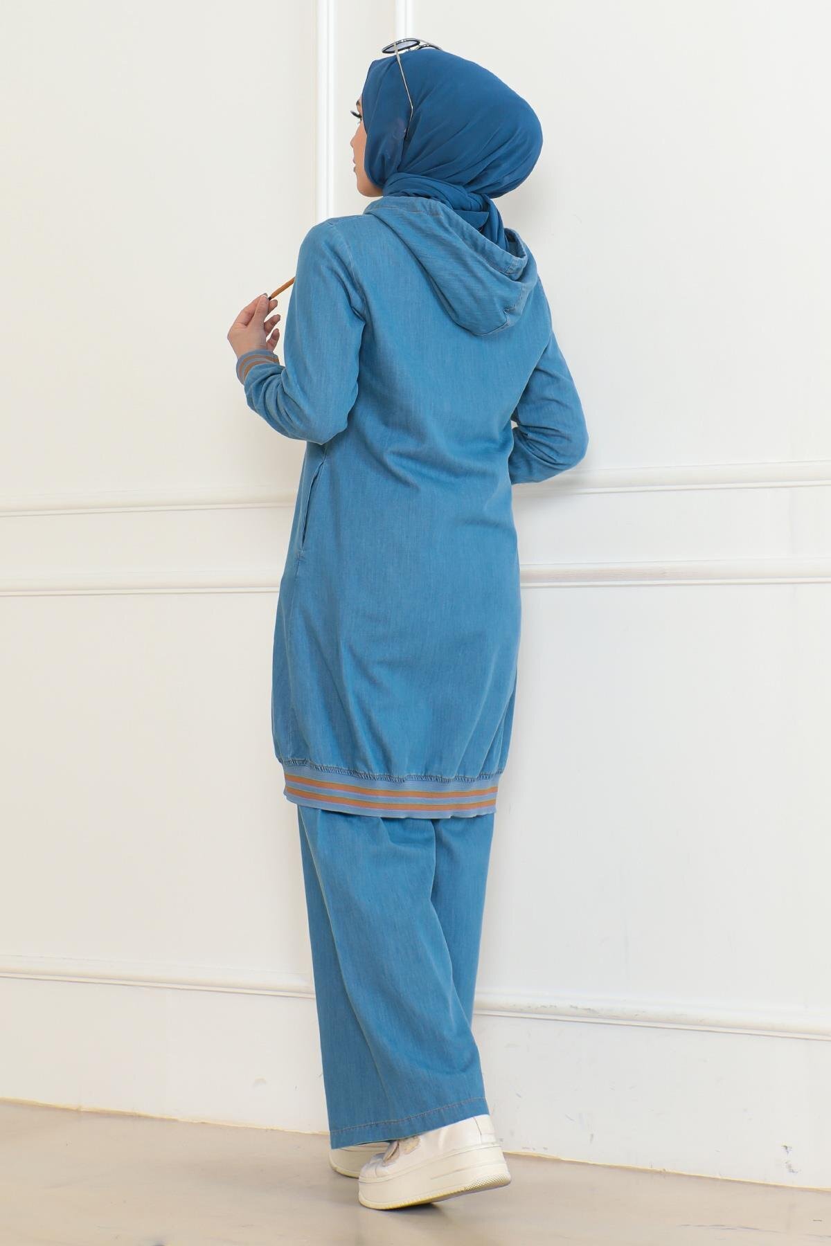 Fermuarlı Ribanalı Kot Takım Açık Mavi 19363 Fermuarlı Ribanalı Kot Takım Açık Mavi 19363 48