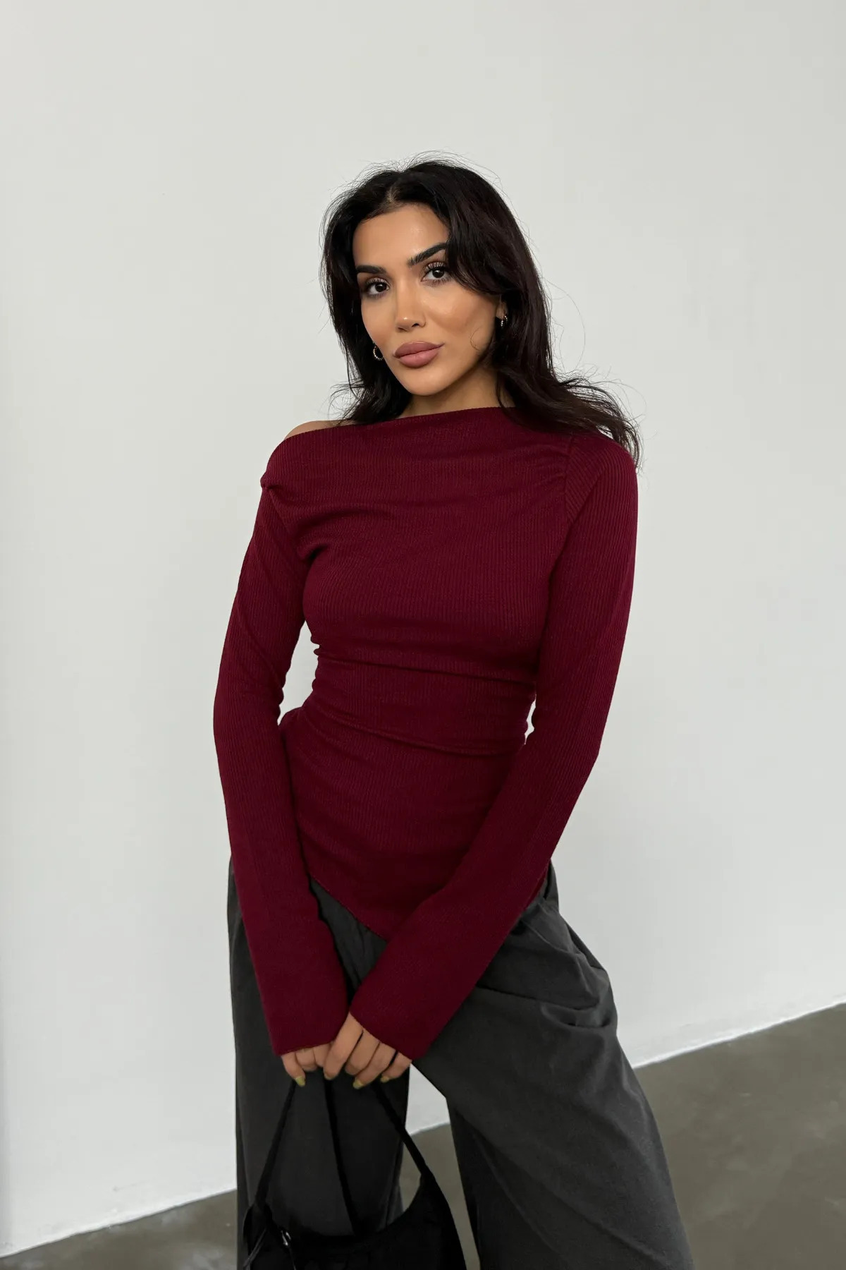 Kadın Bordo Drapeli Kayık Yaka Asimetrik Likralı Örme Bluz Kadın Bordo Drapeli Kayık Yaka Asimetrik Likralı Örme Bluz DRPL-100 L