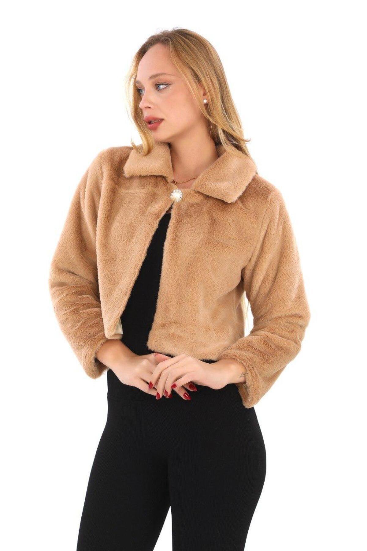 Kadın Beyaz Broşlu Etol Tay Tüyü Kürklü Bolero Ceket Kadın Beyaz Broşlu Etol Tay Tüyü Kürklü Bolero Ceket MMT0003 50