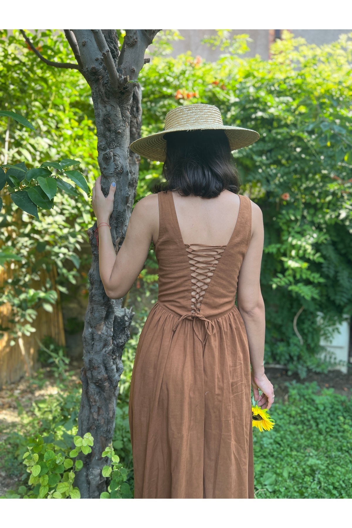 V Yakalı Kahverengi Uzun Kollu Bohem Elbise V Yakalı Kahverengi Uzun Kollu Bohem Elbise kahve700 L/XL