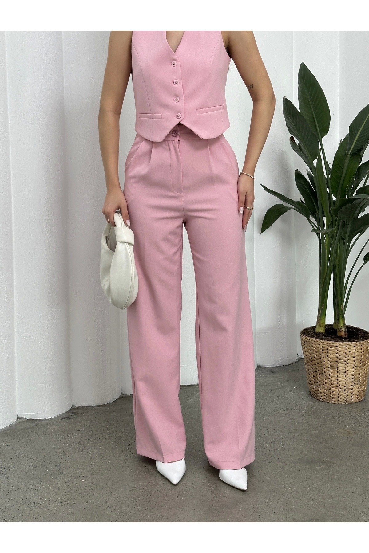 Kadın Vizon Tam Kalıp Bel Oturtmalı Yüksek Bel Geniş Paça Palazzon Pantolon Kadın Vizon Tam Kalıp Bel Oturtmalı Yüksek Bel Geniş Paça Palazzon Pantolon ASF1-A258 L