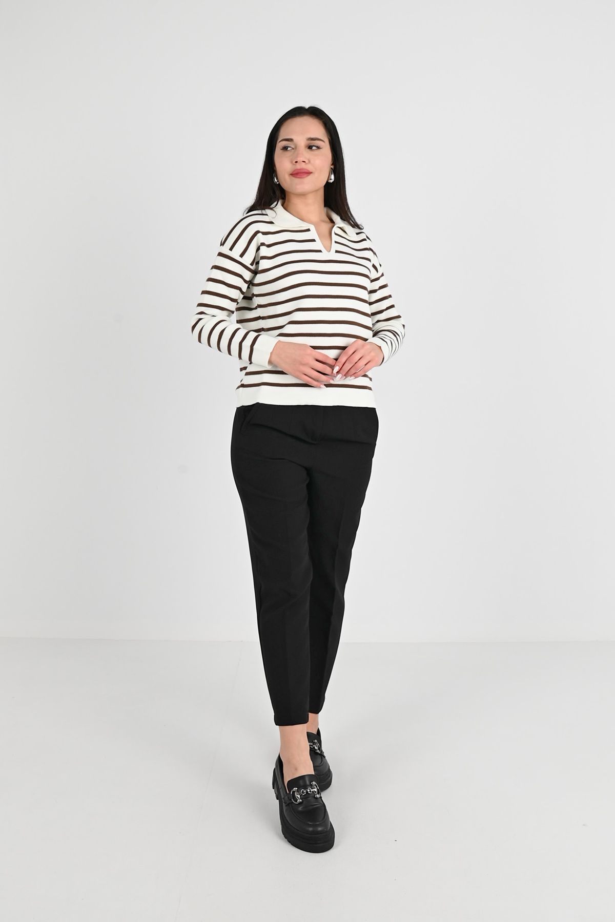Kadın Polo Yaka Çizgili Triko Kazak Turuncu Kadın Polo Yaka Çizgili Triko Kazak Turuncu beyazoglu002-21 Standart