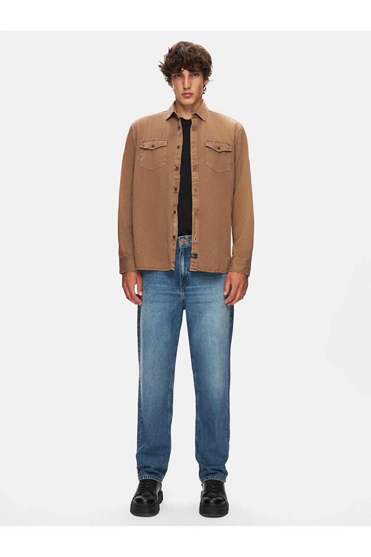 Basıc Keten Görünümlü Regular Uzun Kollu Lacivert Gömlek Basıc Keten Görünümlü Regular Uzun Kollu Lacivert Gömlek 012254917325008 2XL